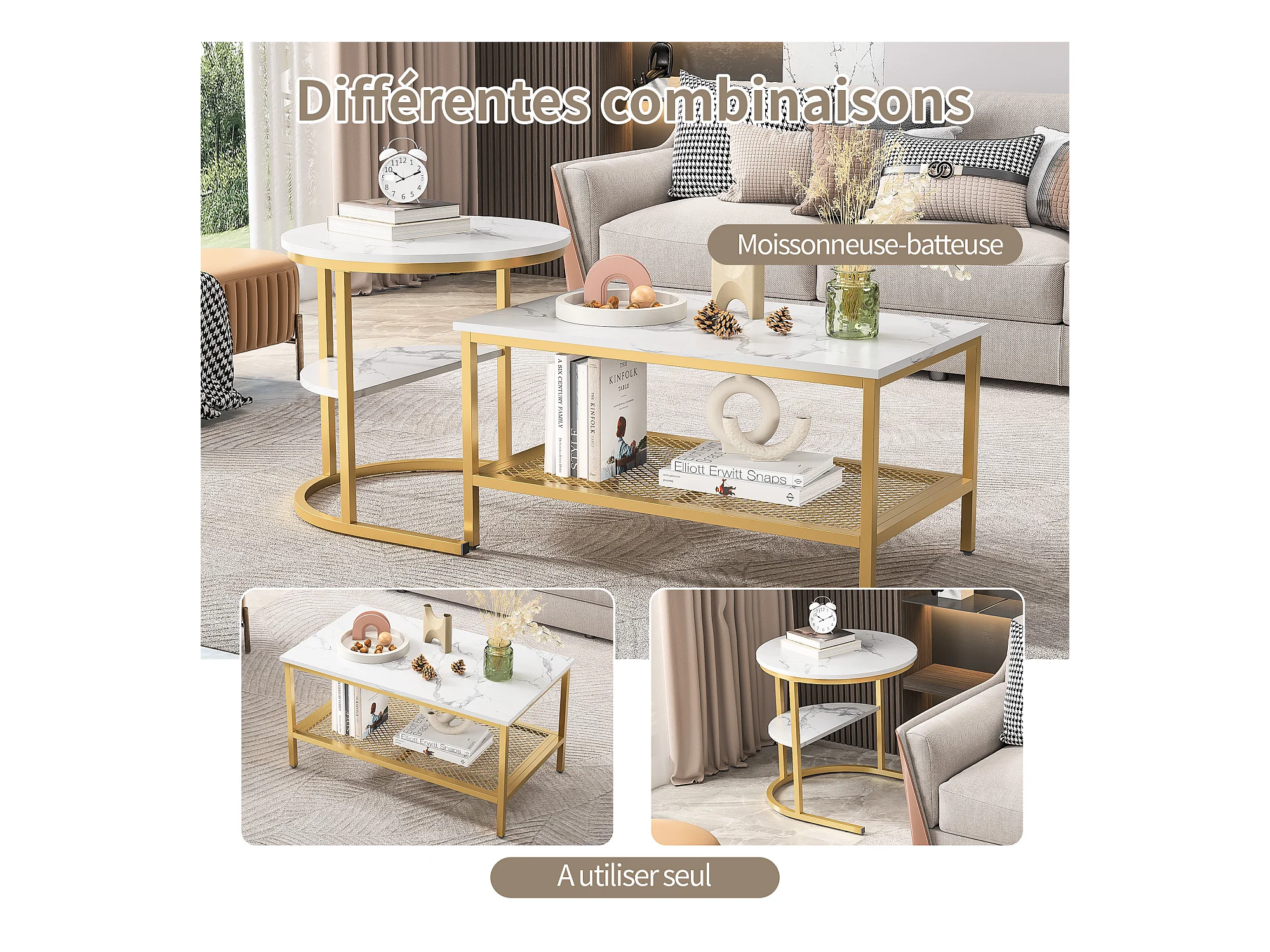 Lot de 2 tables basses gigognes scandinave moderne design combinaison libre