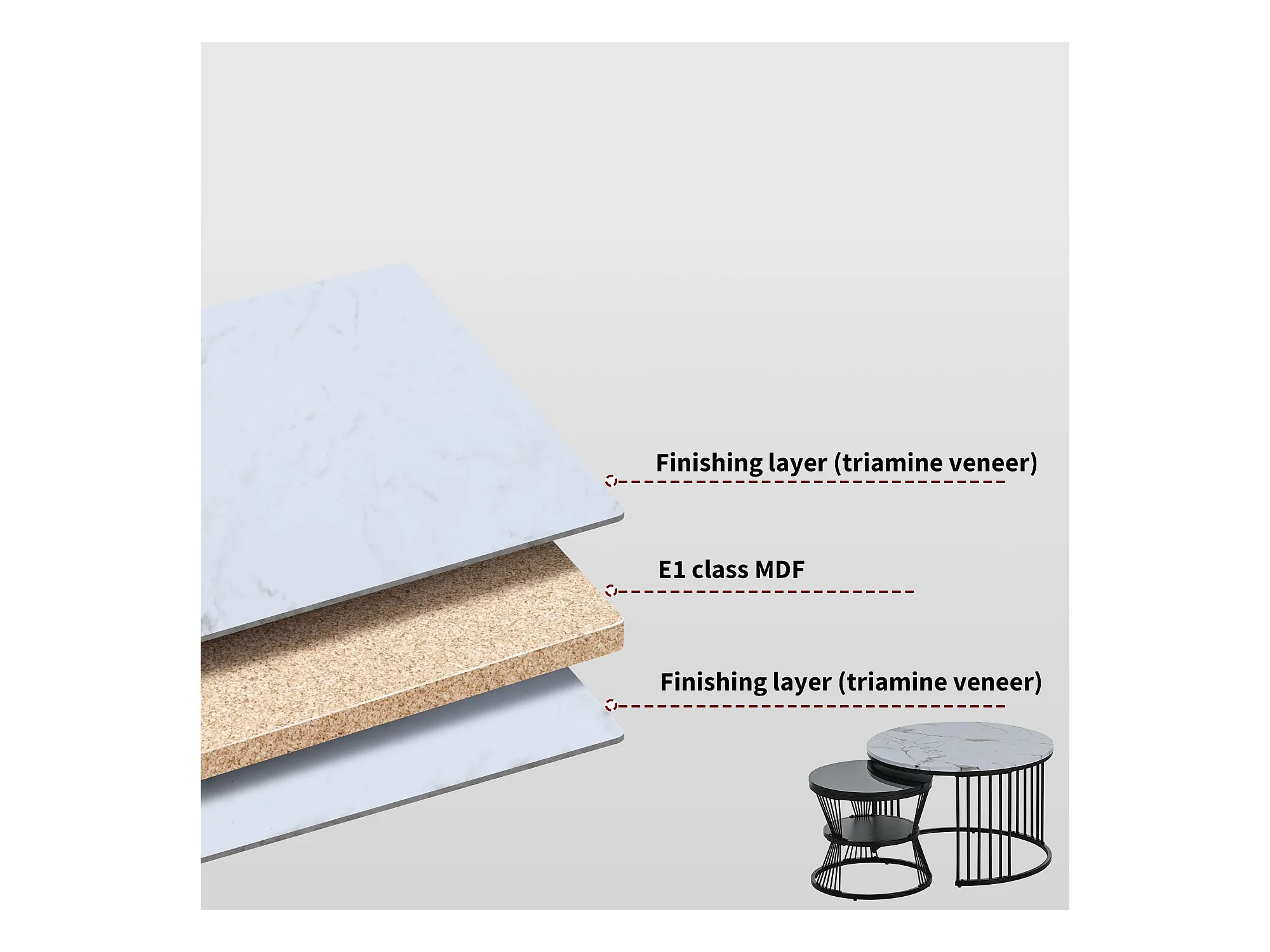 Lot de 2 tables basses gigognes - style scandinave - placage à motif de marbre - Noir