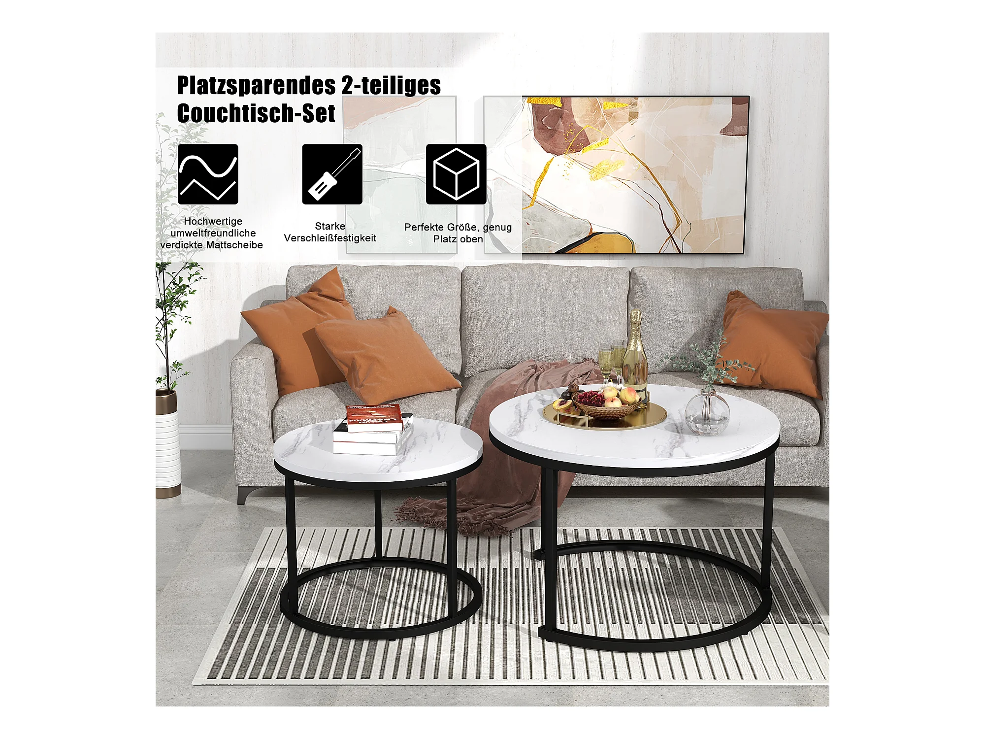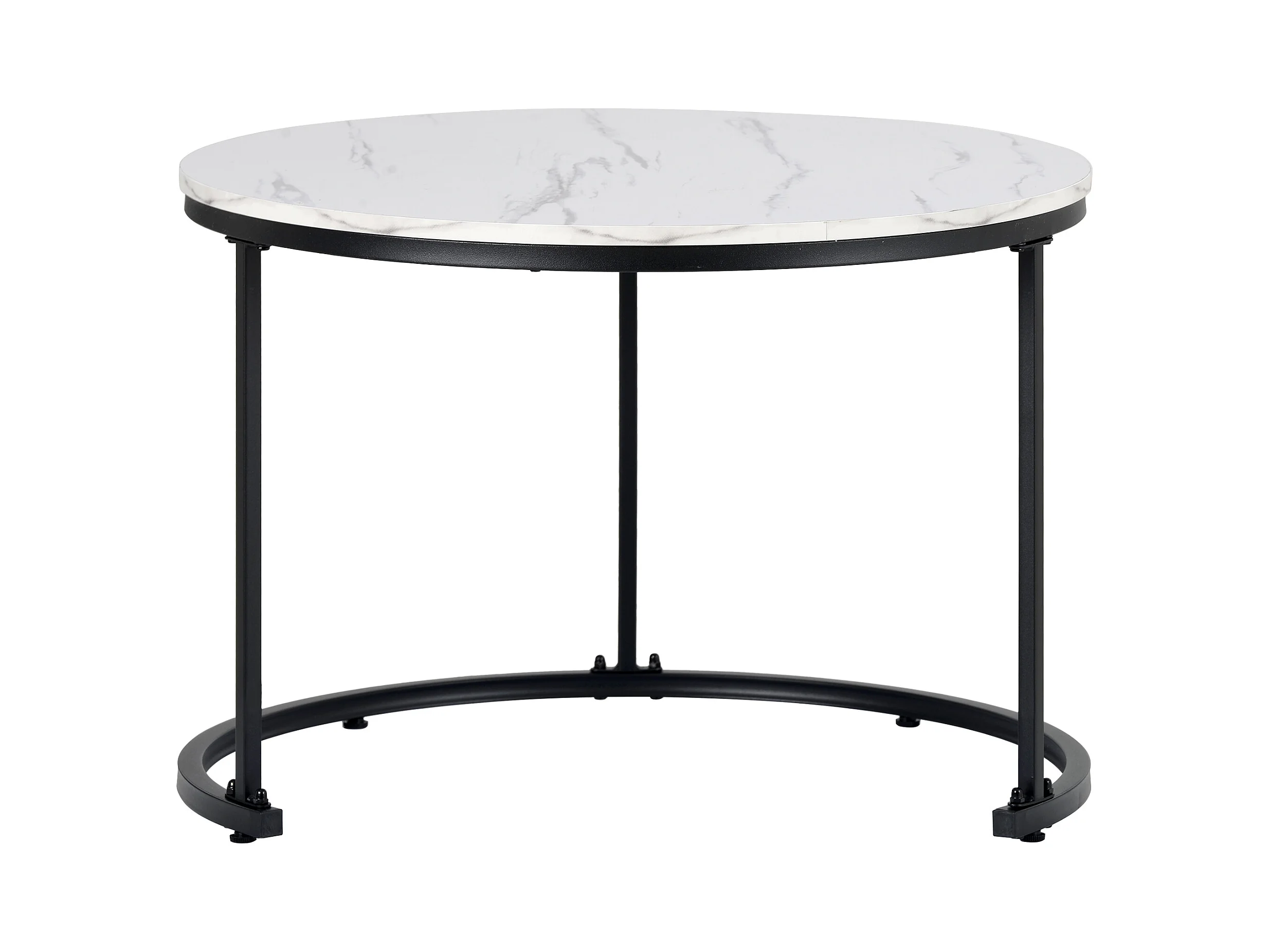 Lot de 2 tables basses gigognes, table d'appoint ronde en MDF, placage marbré, blanc