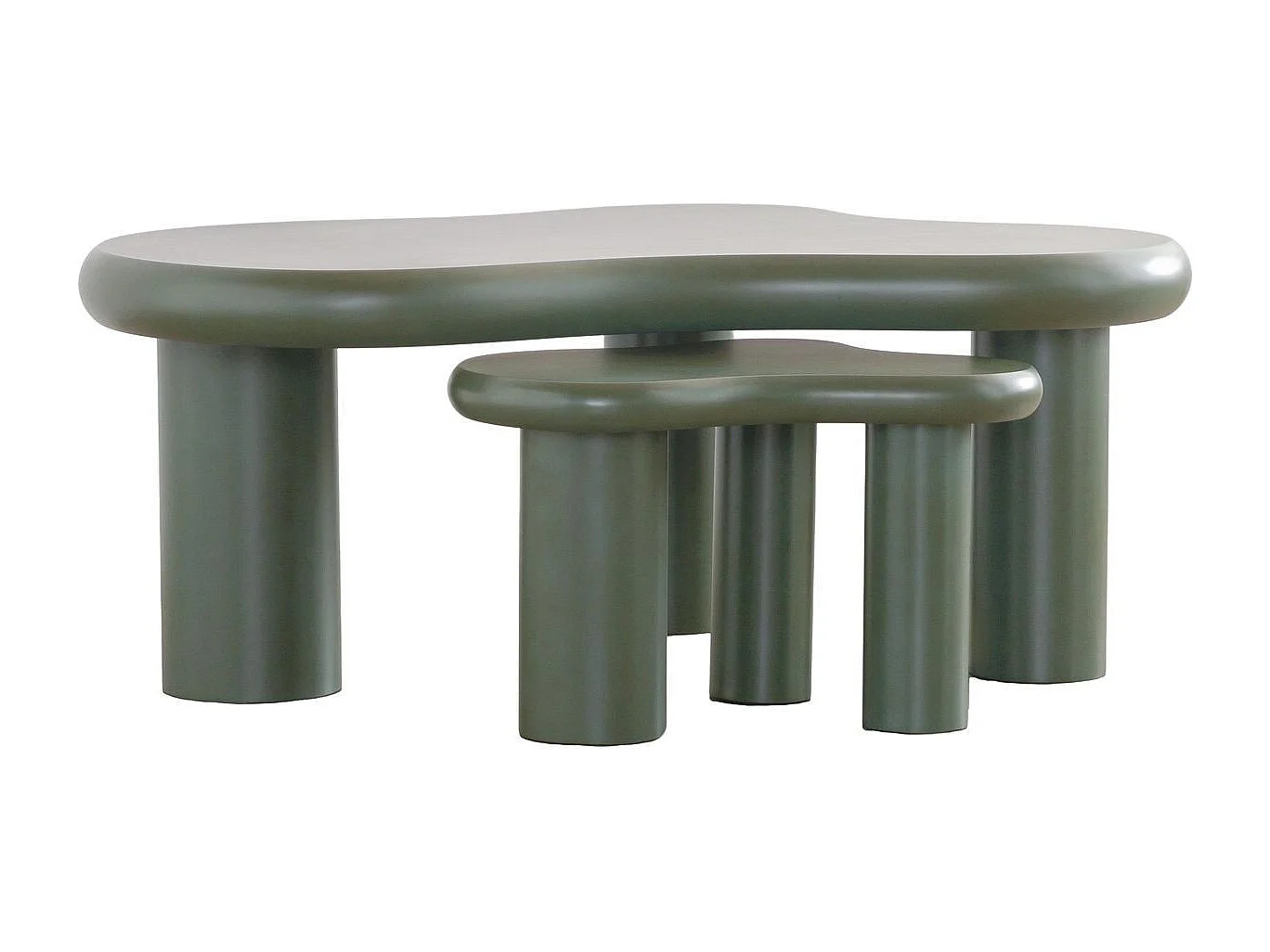 Lot de 2 tables basses organiques gigognes vert mat - Wave