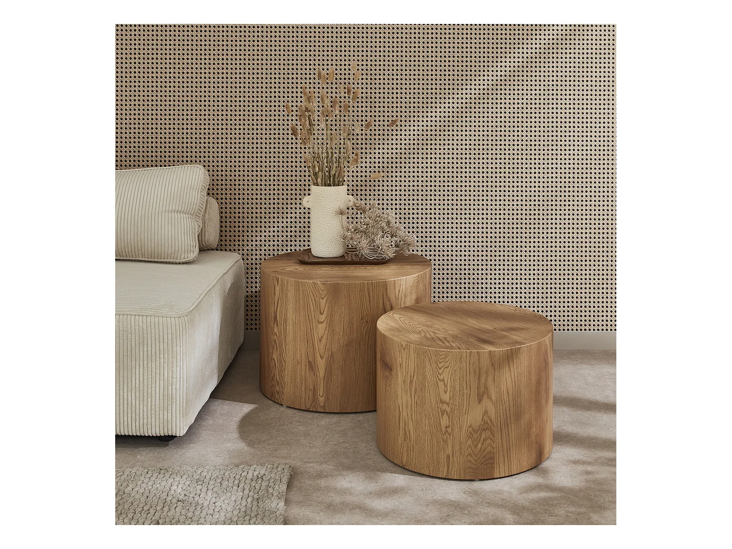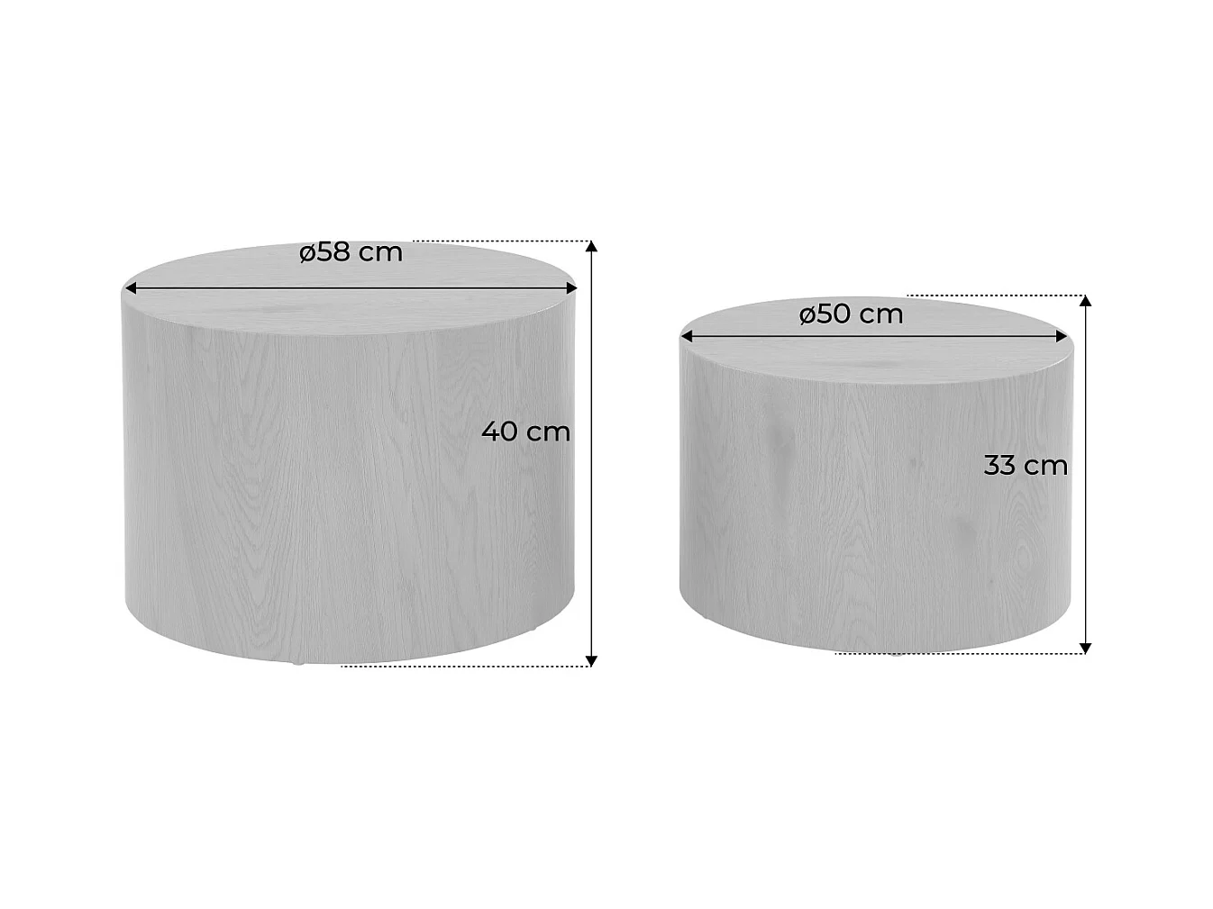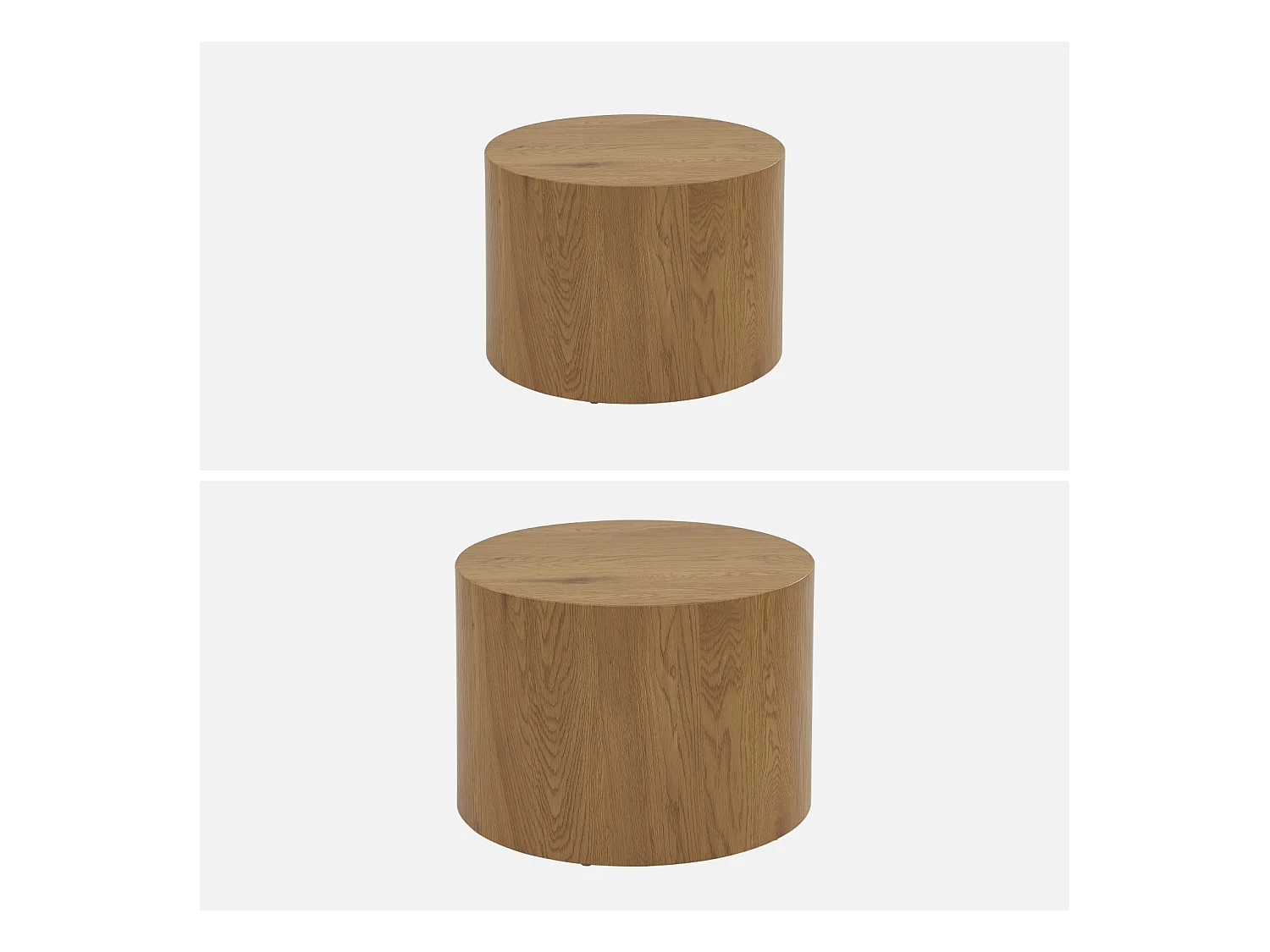 Lot de 2 tables basses rondes effet chêne. Ø58 x H 40cm / Ø50 x H 33cm SYLVA