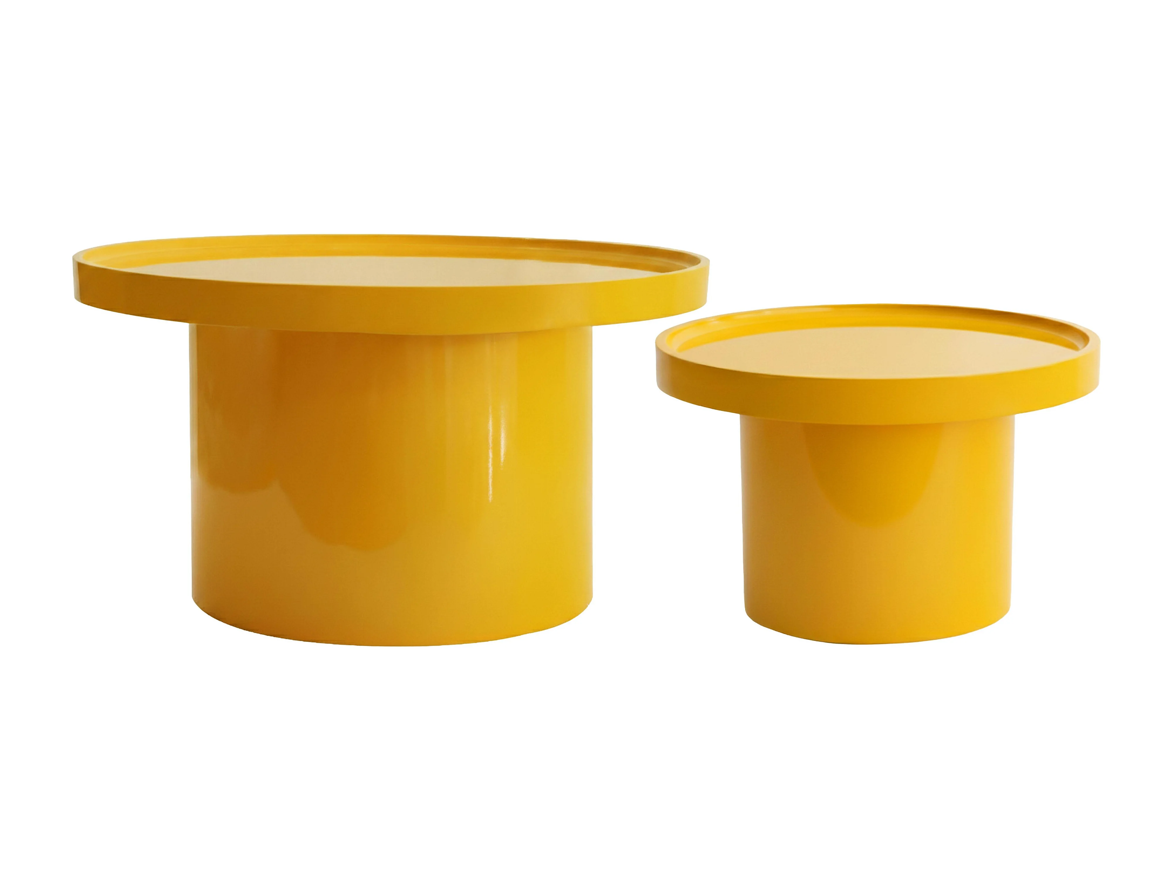 Lot de 2 tables basses rondes en MDF effet laqué jaune