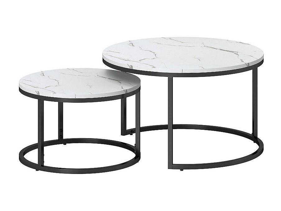 GRACY - Lot de 2 Tables Gigognes Plateaux Effet Granit Blanc