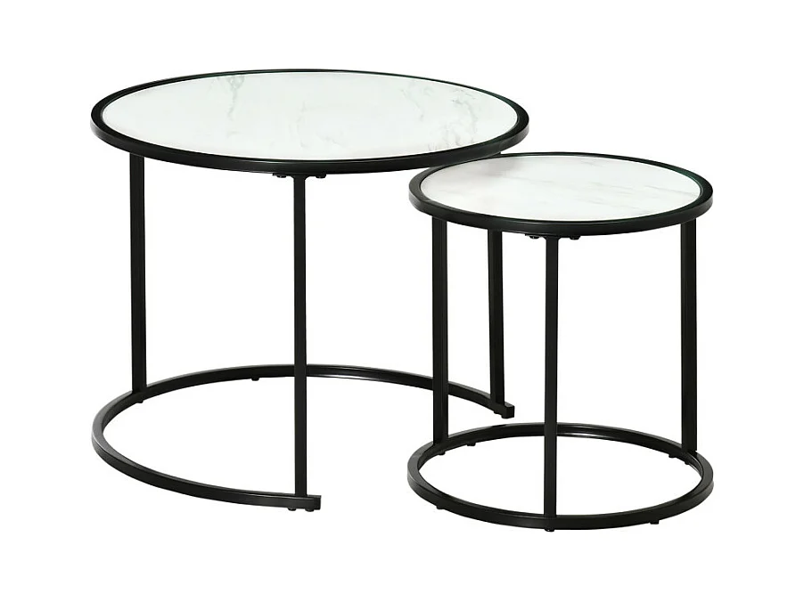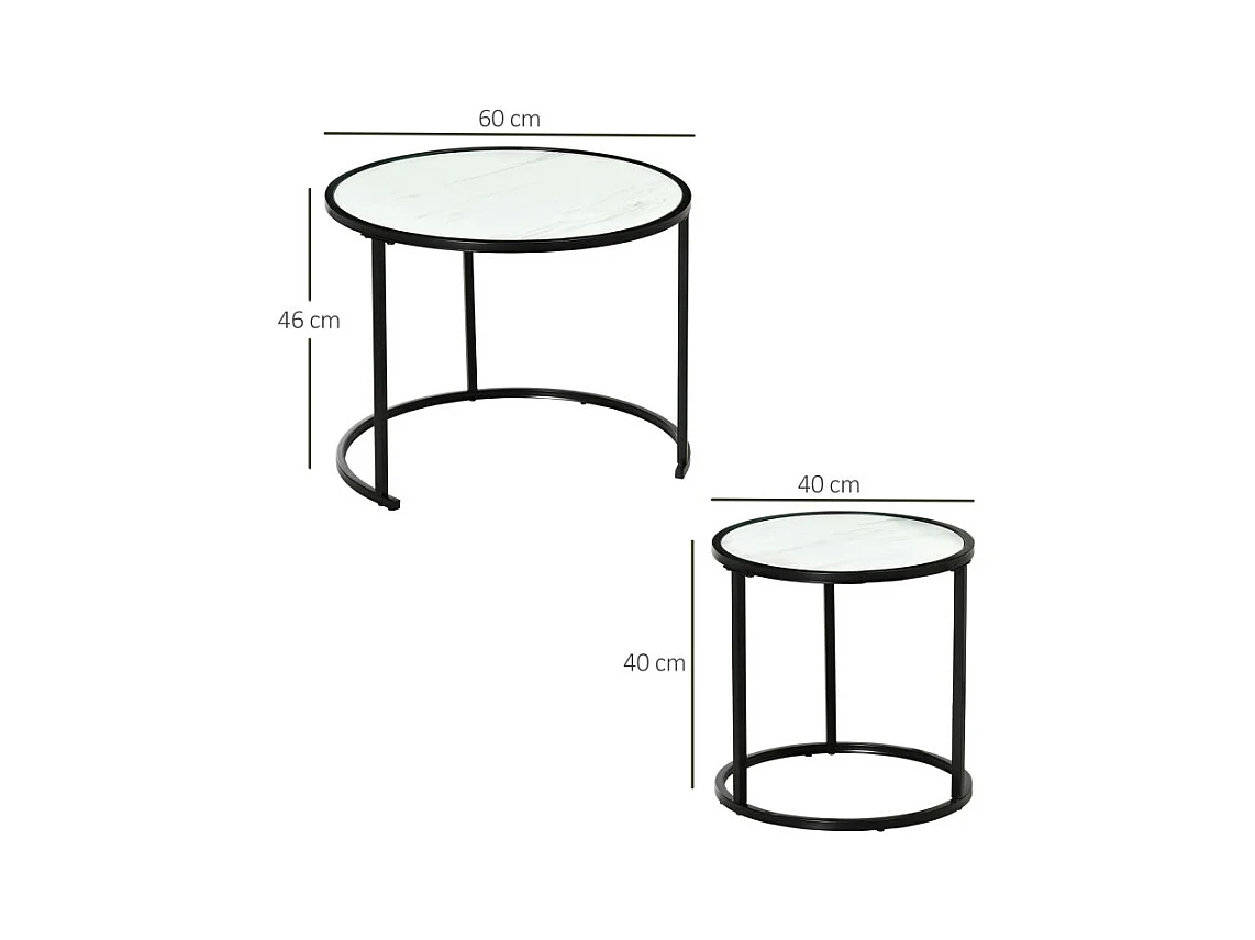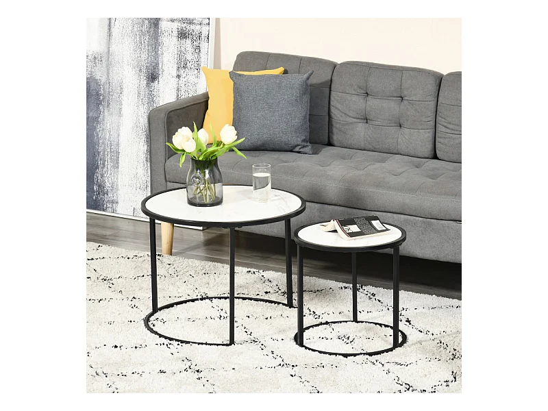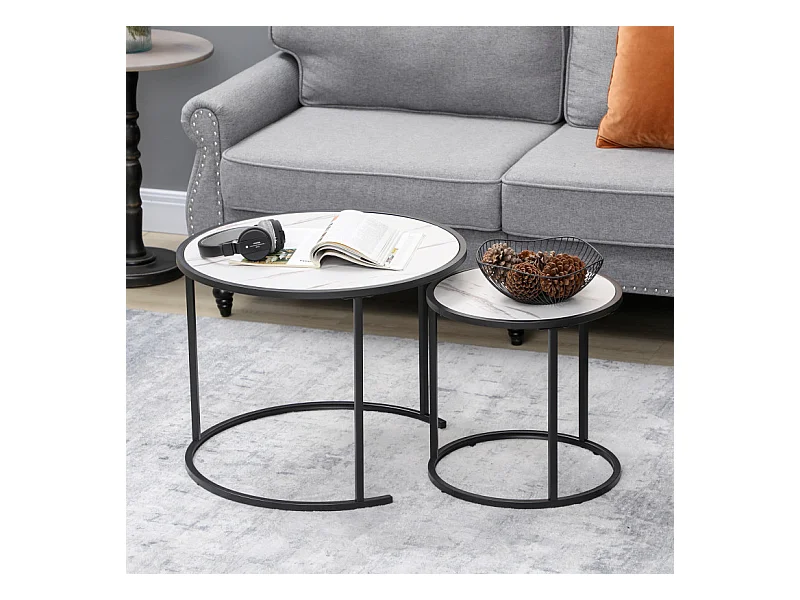 Lot de 2 tables basses rondes gigognes ORPHEE noires et blanches