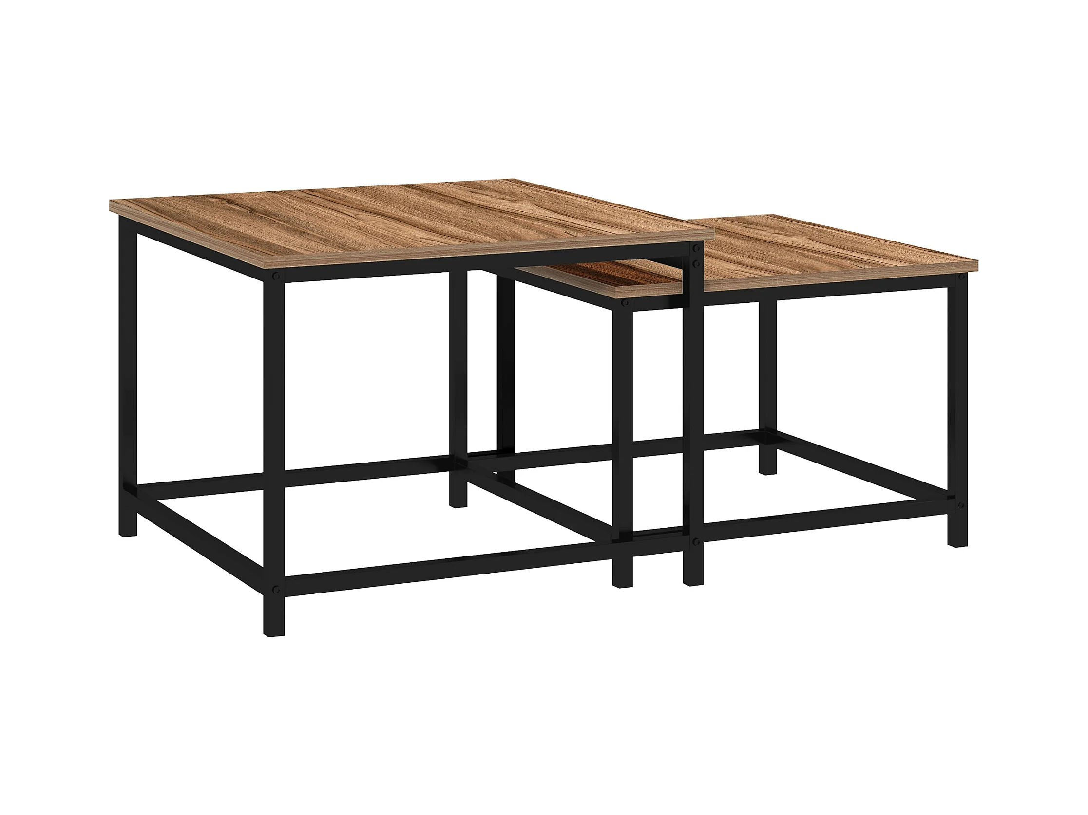 Lot de 2 tables basses style industriel, tables d’appoint avec plateau aspect bois et structure en acier, finition naturelle