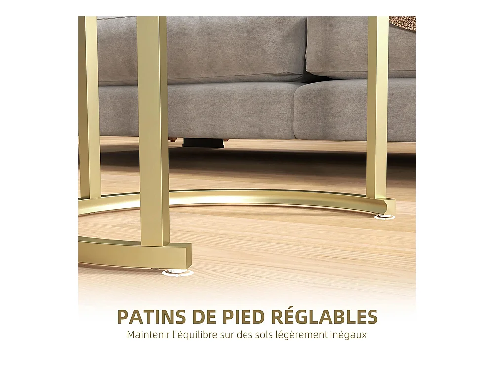 Lot de 2 tables basses tables d'appoint gigognes encastrables structure en acier et plateau en bois aspect marbre or