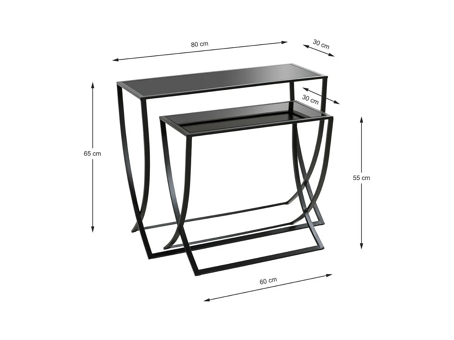 Lot de 2 Tables d'Appoint "Anico" 80cm Noir Laqué