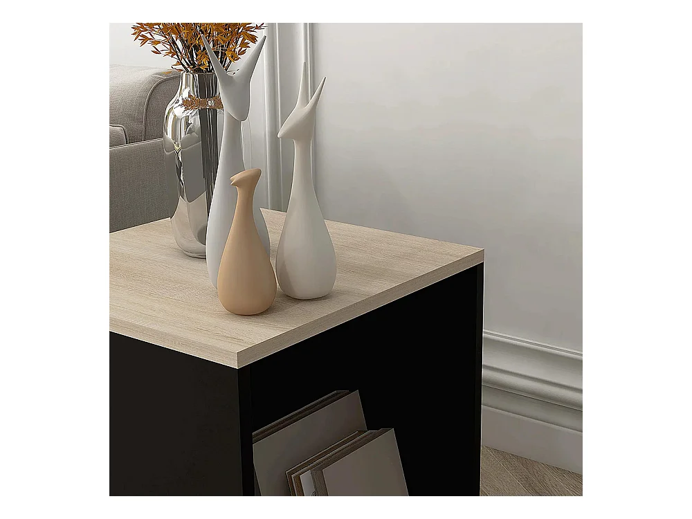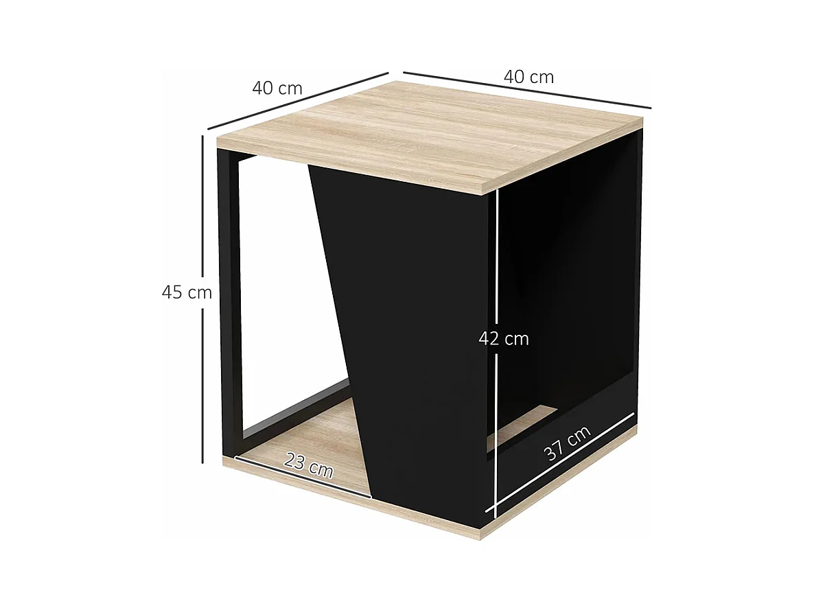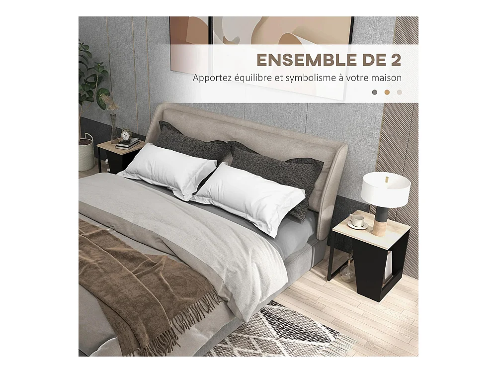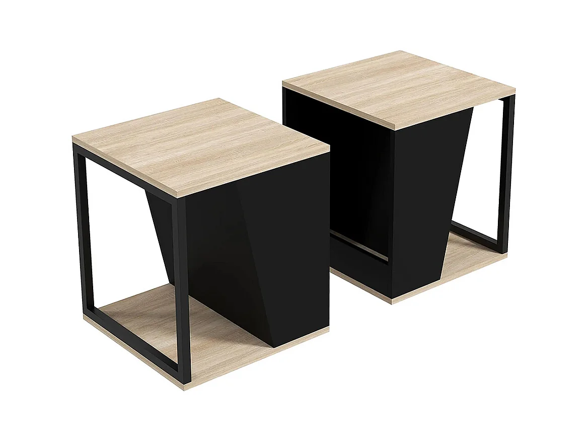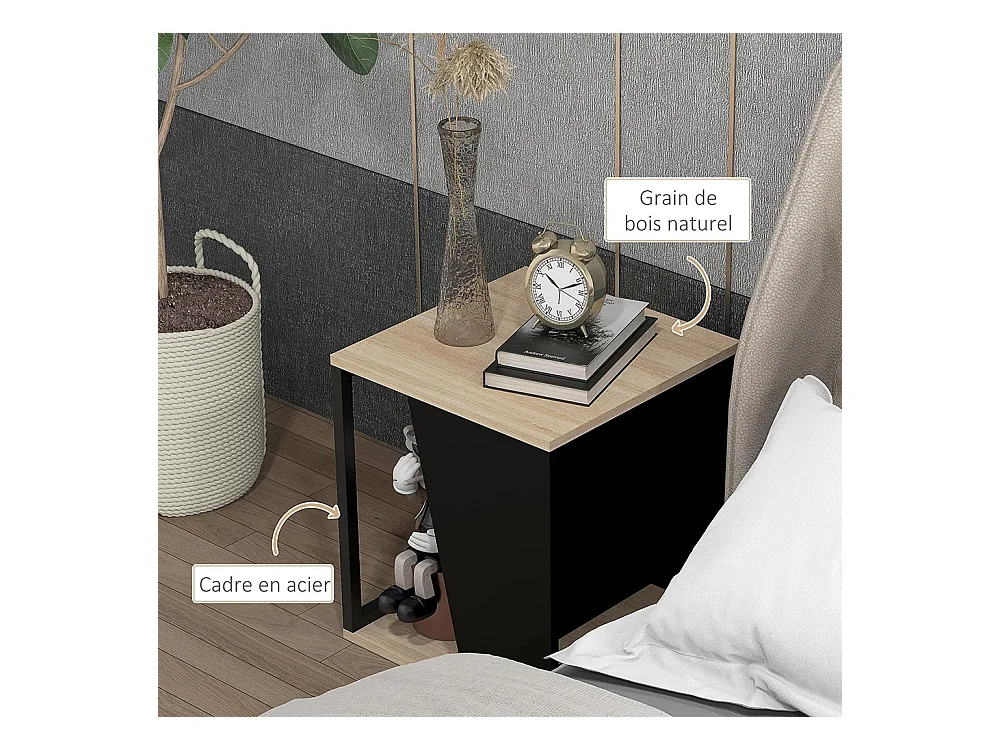 Lot de 2 tables d'appoint bout de canapé avec rangement structure en acier 40 x 40 x 45 cm noir et naturel
