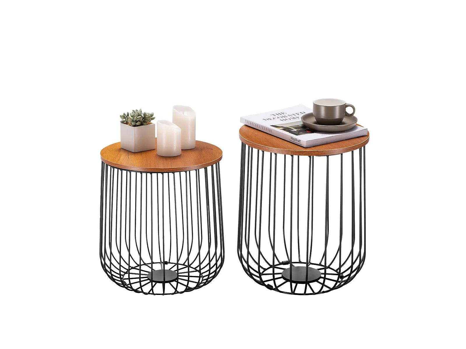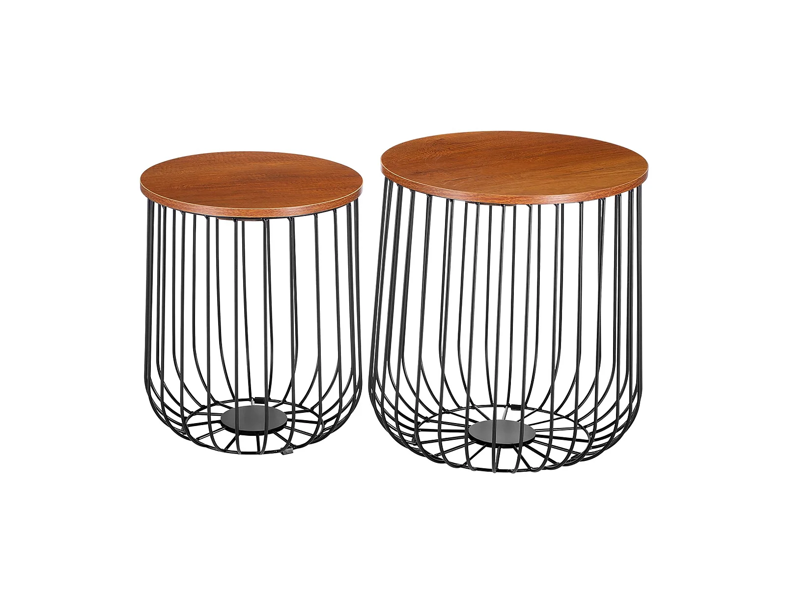 Lot de 2 tables d'appoint ERRANO paniers en métal tables à café tables basses rondes bouts de canapé vintage décor chêne sauvage