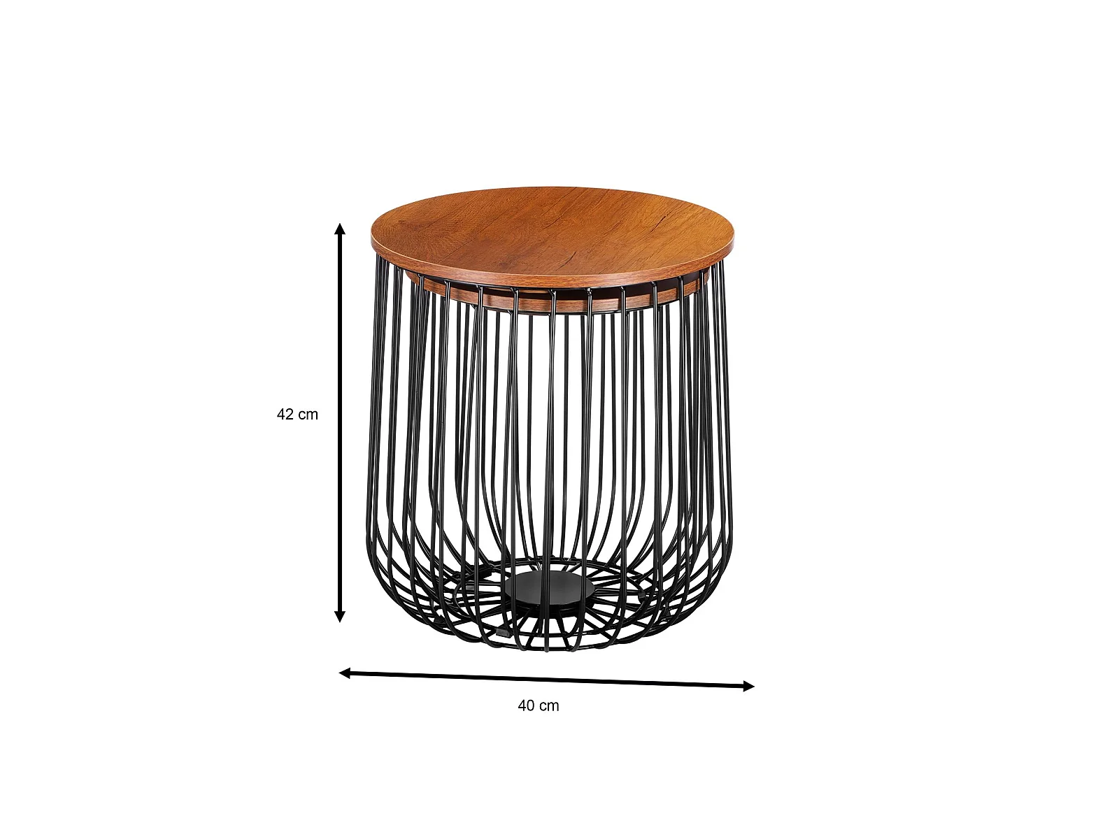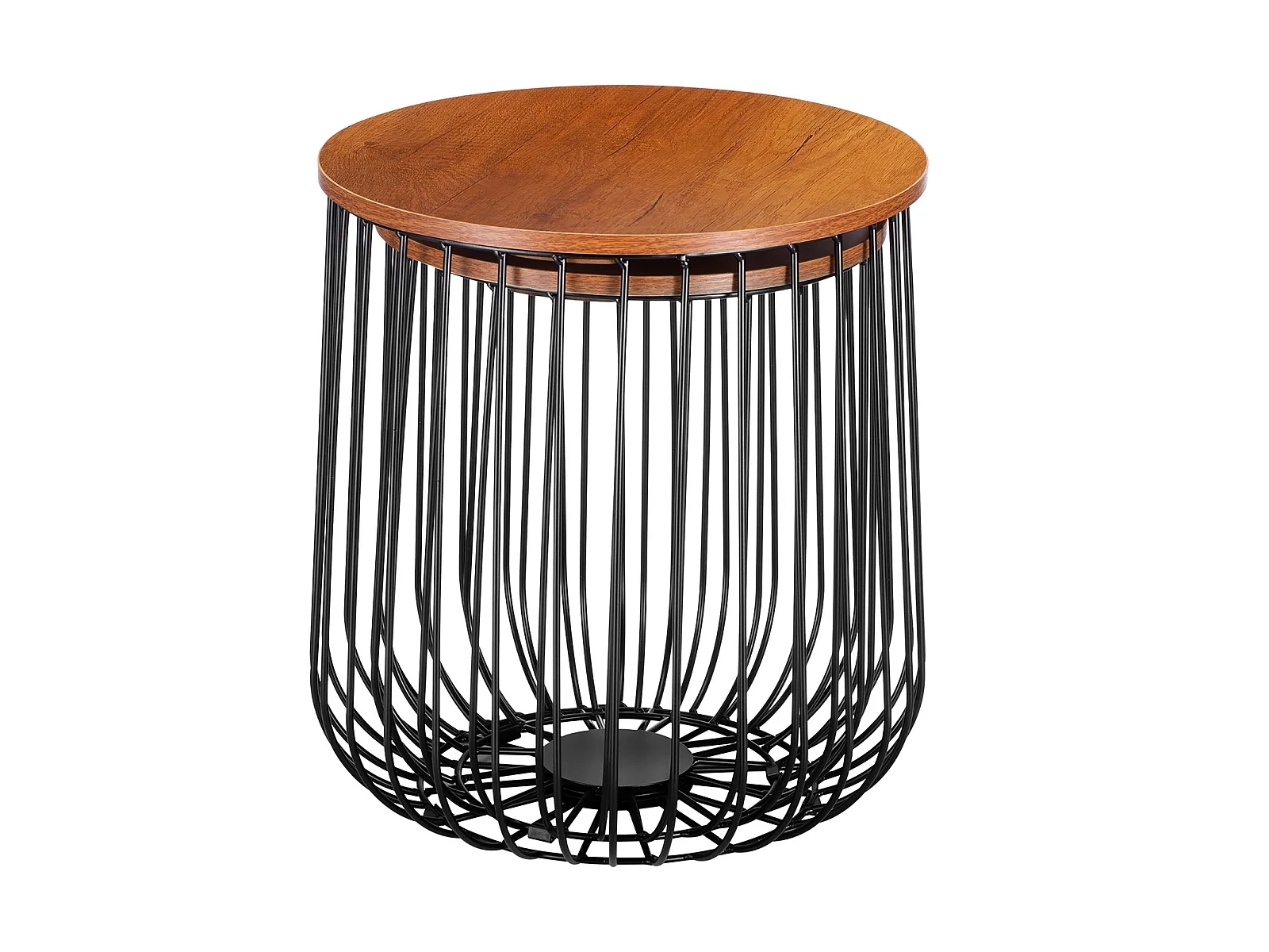 VOLLRAD - Bout de Canapé Carré Acier et Bois Aspect Naturel