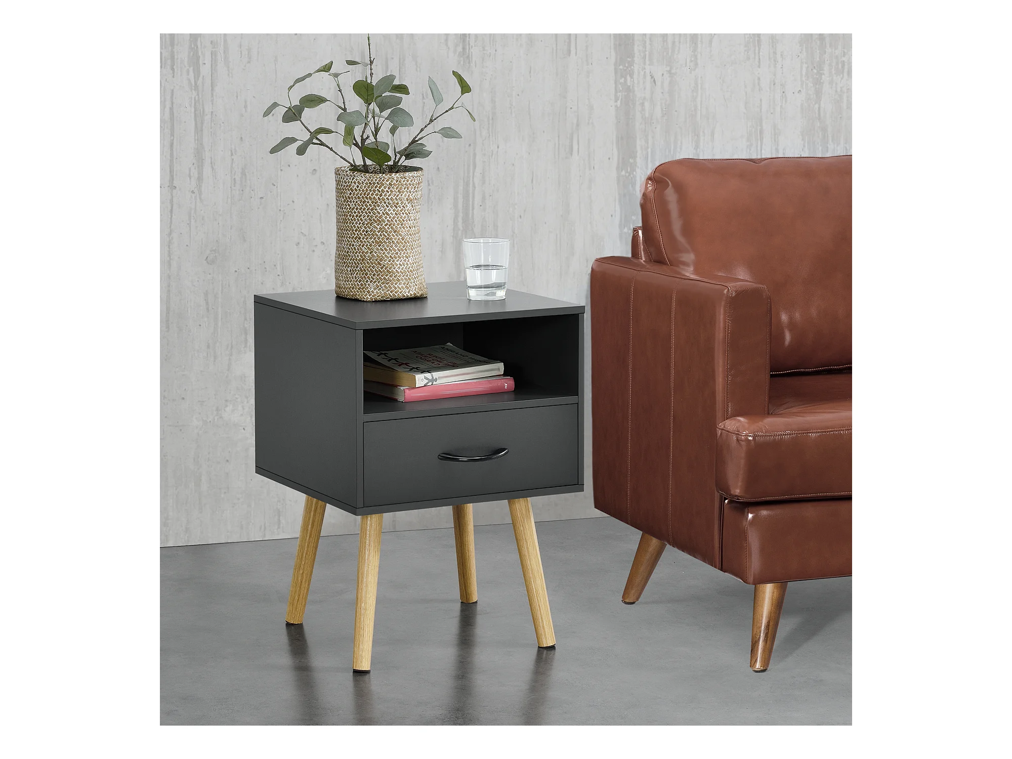 Table de chevet table de nuit avec tiroir coloris Gris graphite/Chêne artisan - Longueur 60 x Profondeur 44 x Hauteur 50 cm