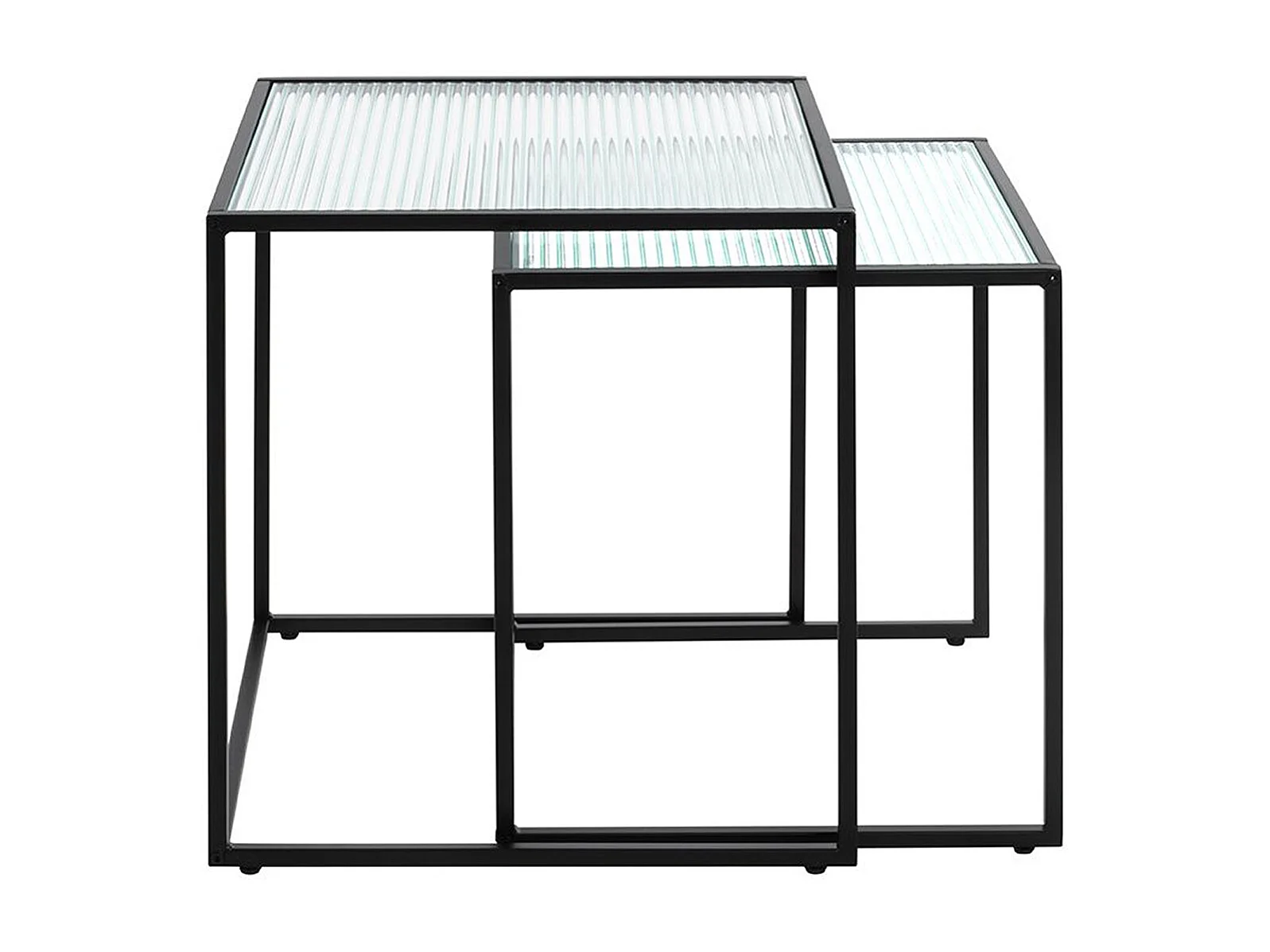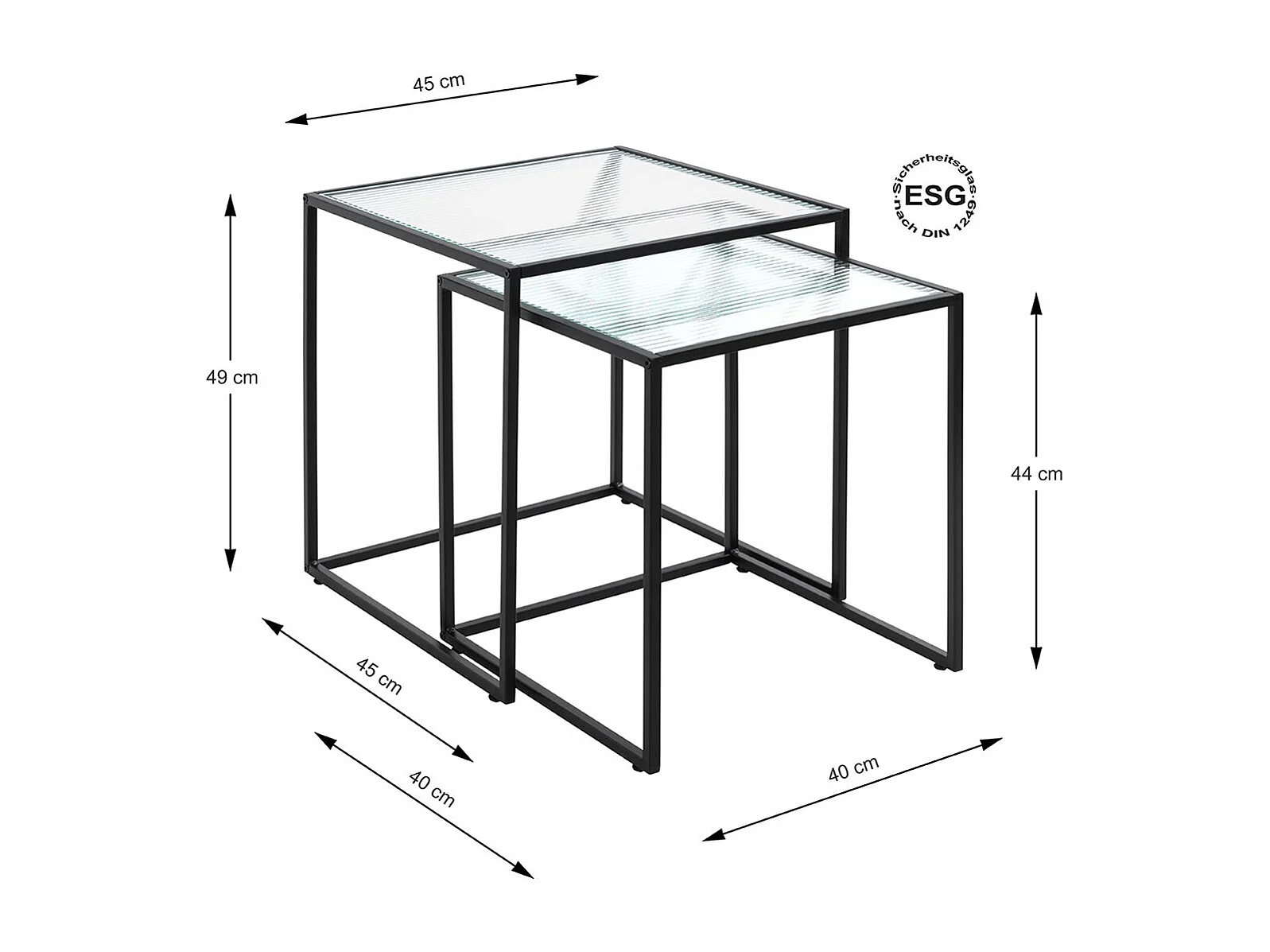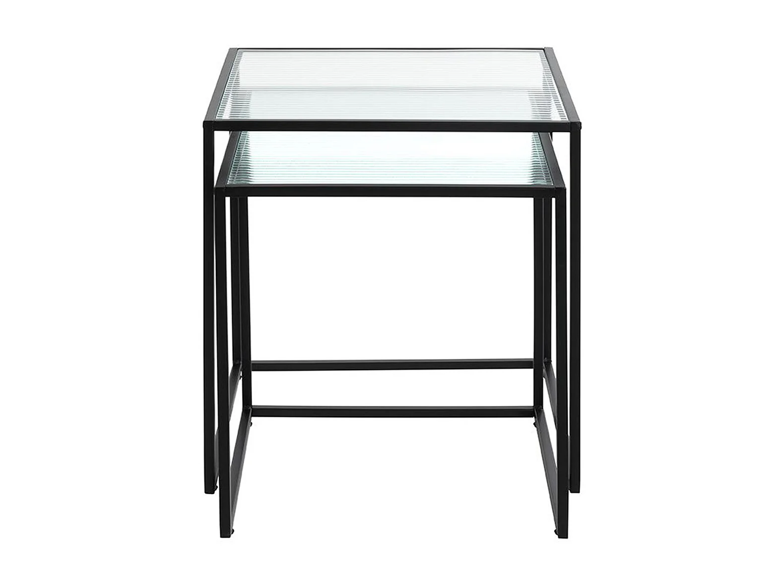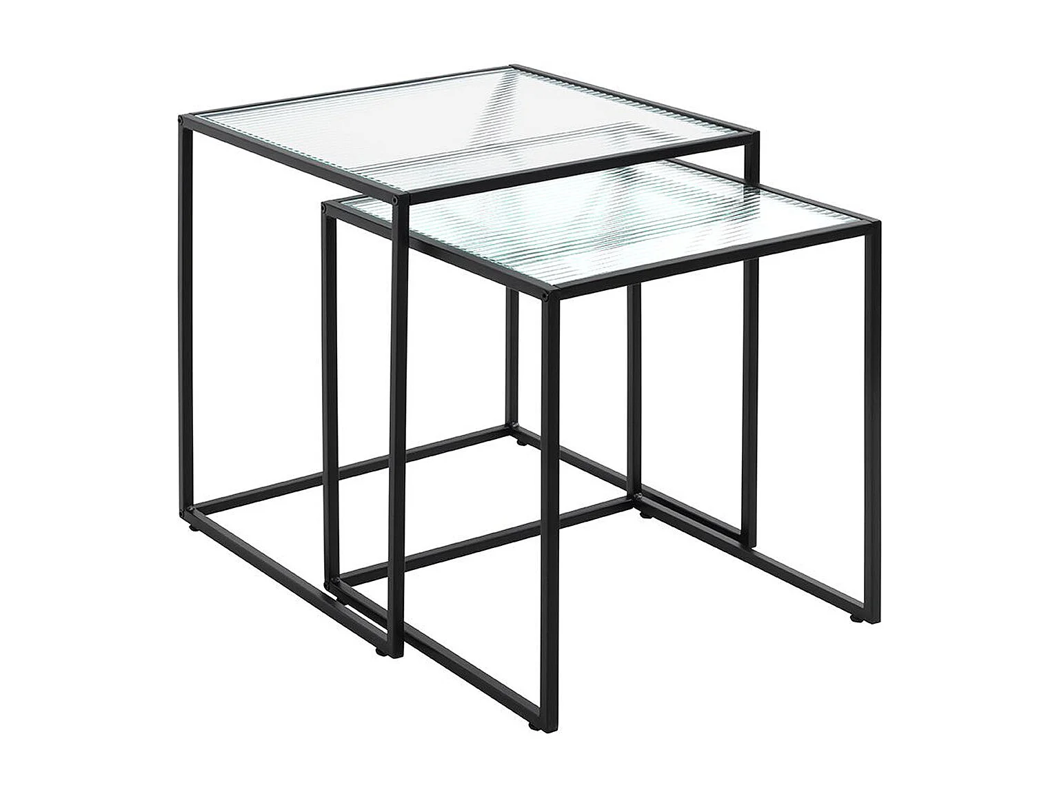 Lot de 2 tables basse en verre et métal noir - Longueur 50 x largeur.50 x Hauteur 49,5/39,5 cm