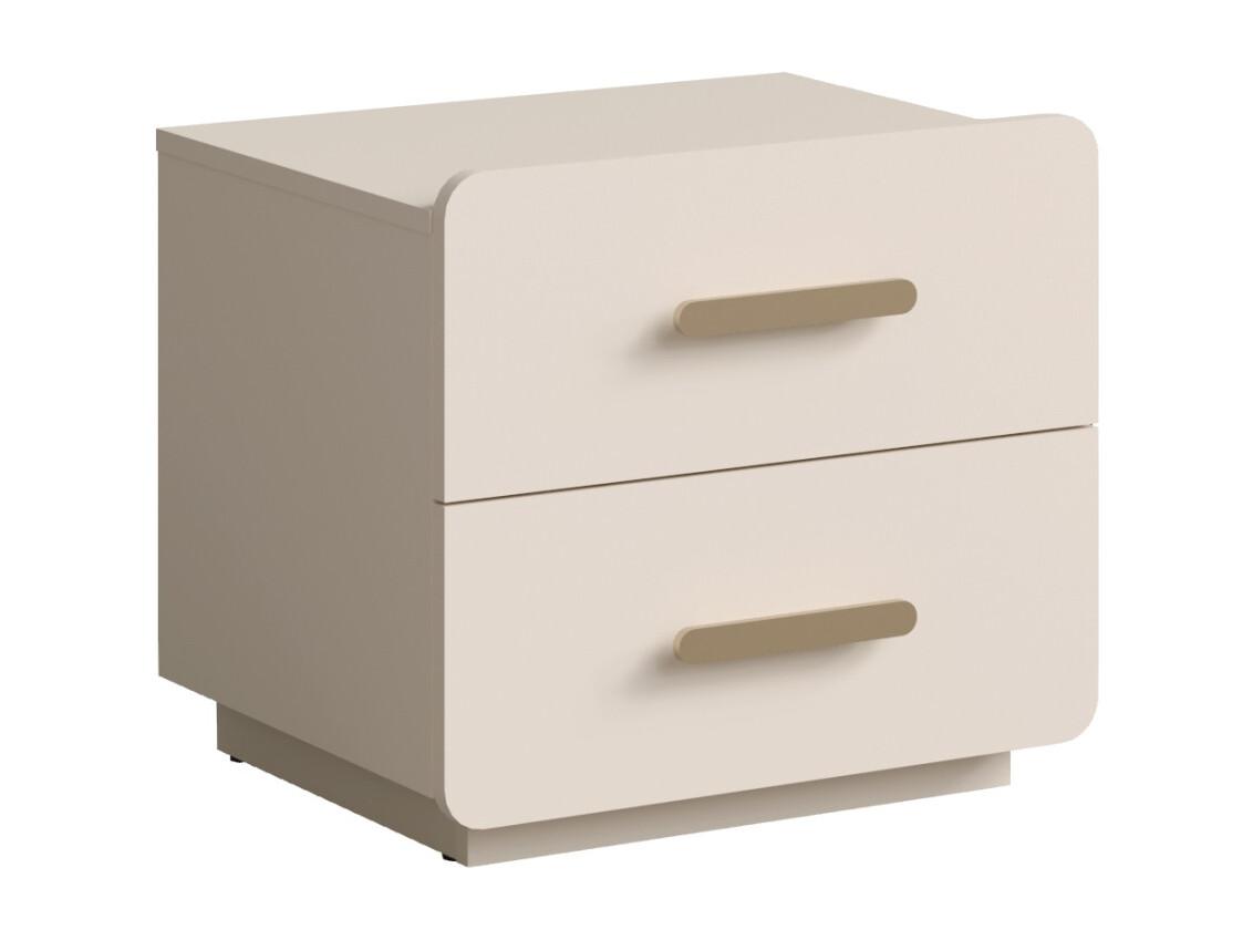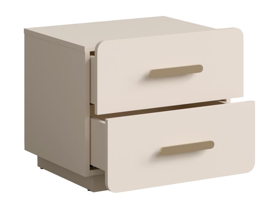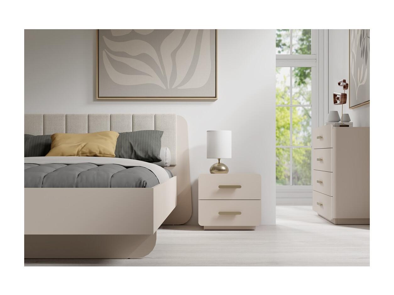 Lot de 2 tables de chevet AMALIE – 2 tiroirs – Coloris beige – Poignées dorées – Design arrondi