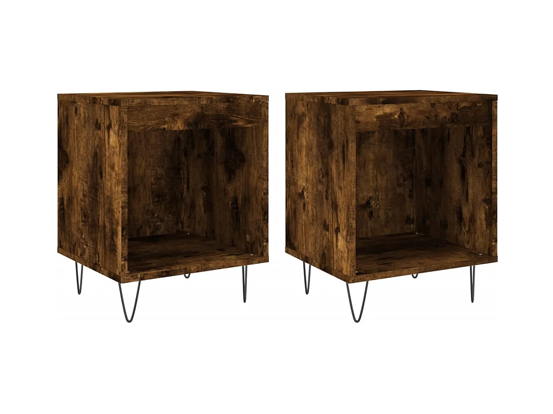 Lot de 2 Tables de chevet avec Compartiments ouverts chêne fumé 40x35x50 cm bois ingénierie