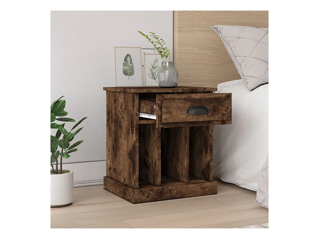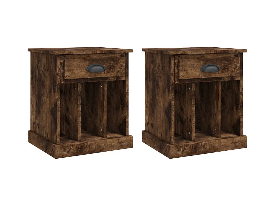 Lot de 2 Tables de chevet avec Compartiments ouverts chêne fumé 40x35x50 cm bois ingénierie