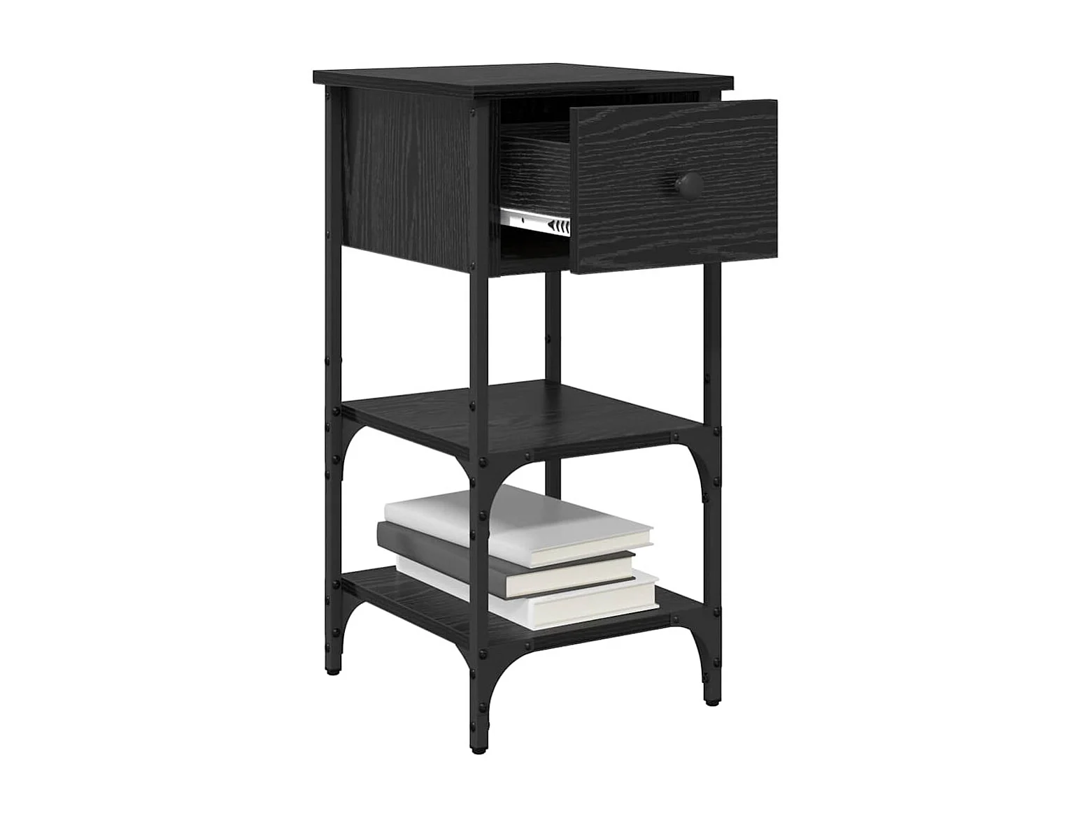 Lot de 2 Tables de chevet avec tiroir chêne noir 20x36x60 cm
