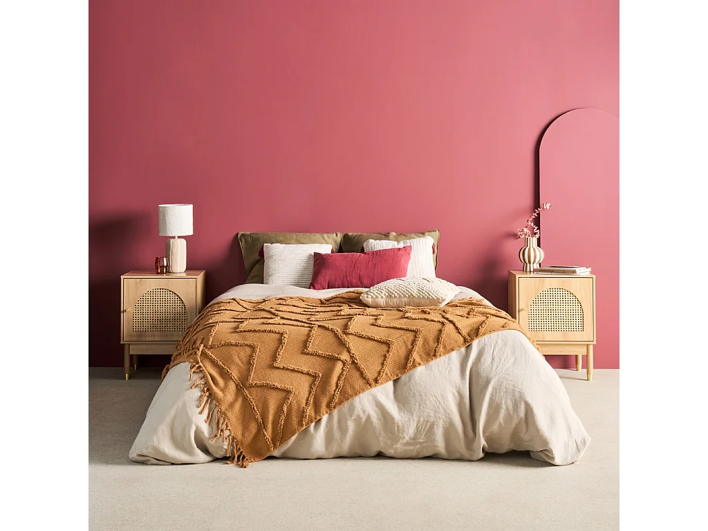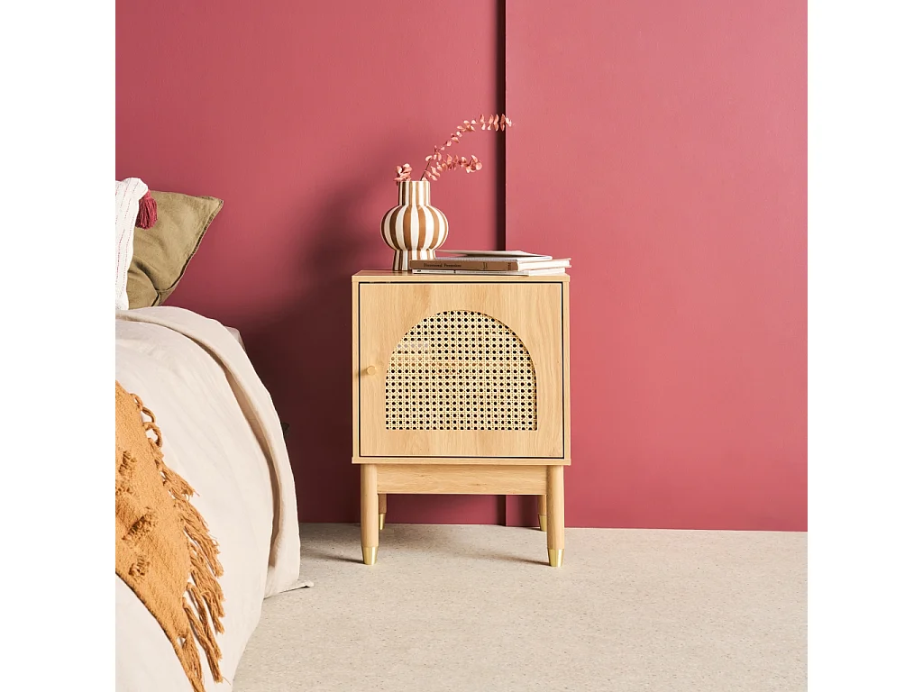 Table de chevet bohème bois et cannage naturel 1 porte 45 x 40 x 60 cm - Judith