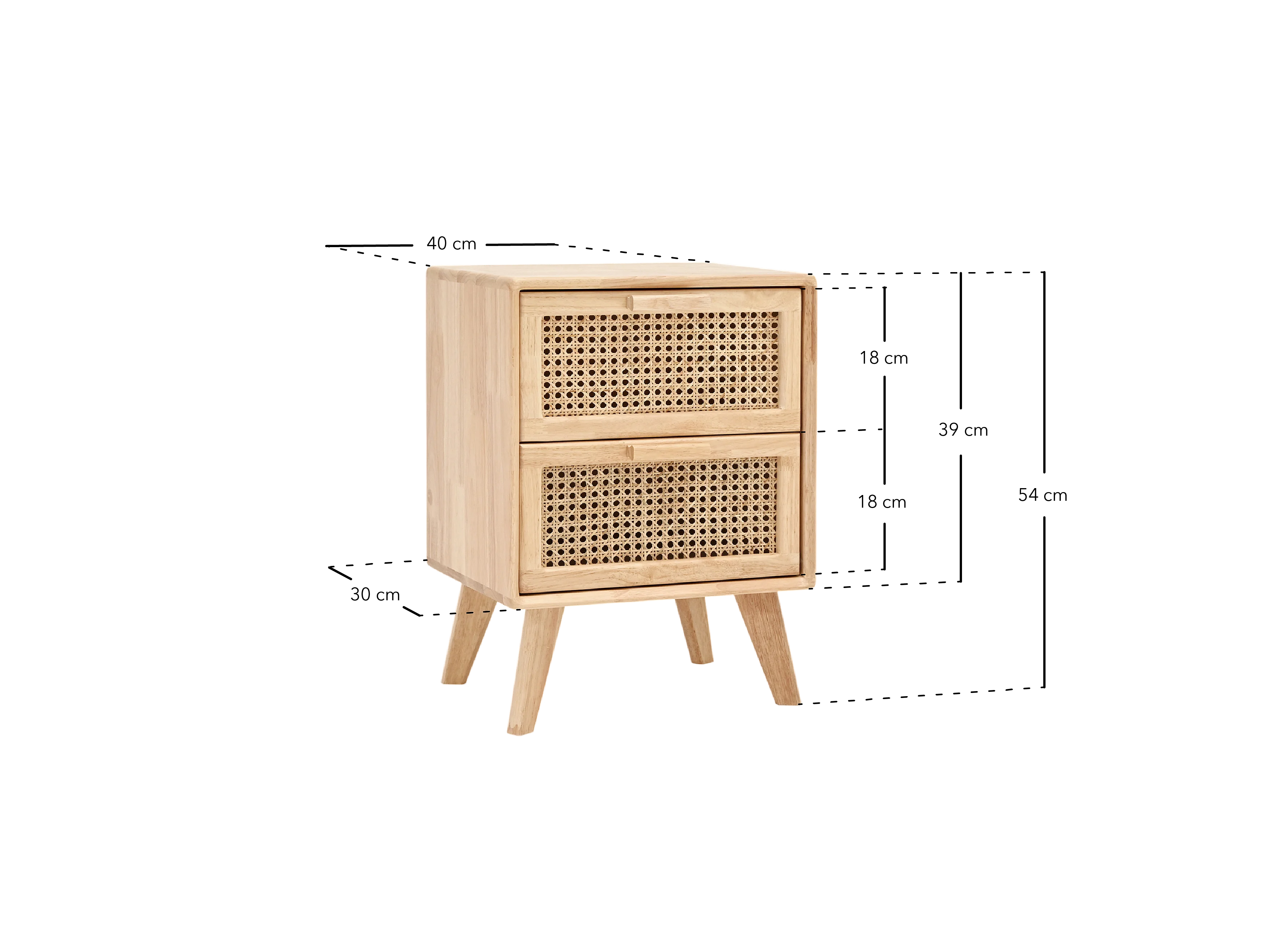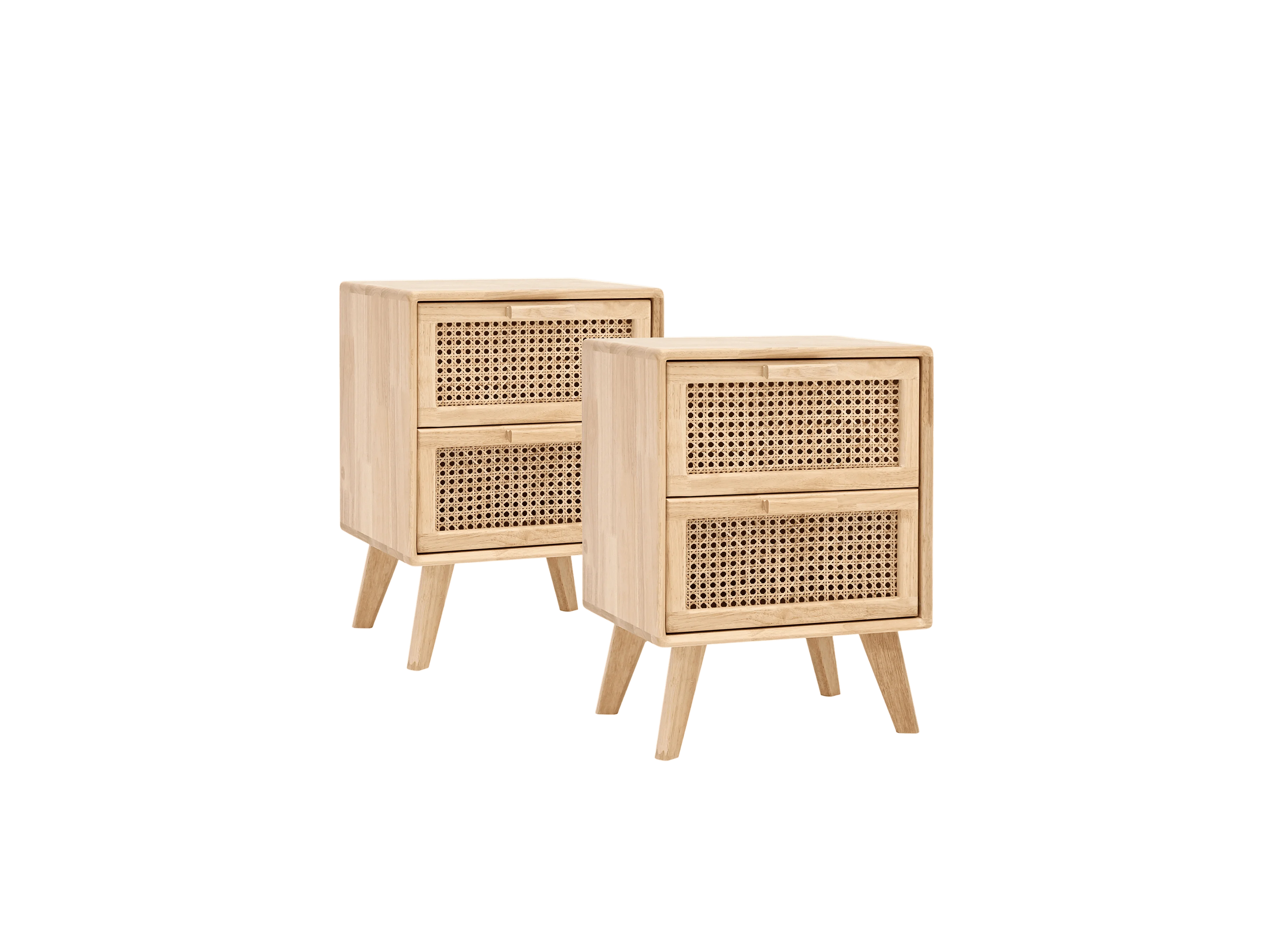 Lot de 2 tables de chevet en bois d'hévéa avec deux tiroirs 54x40cm