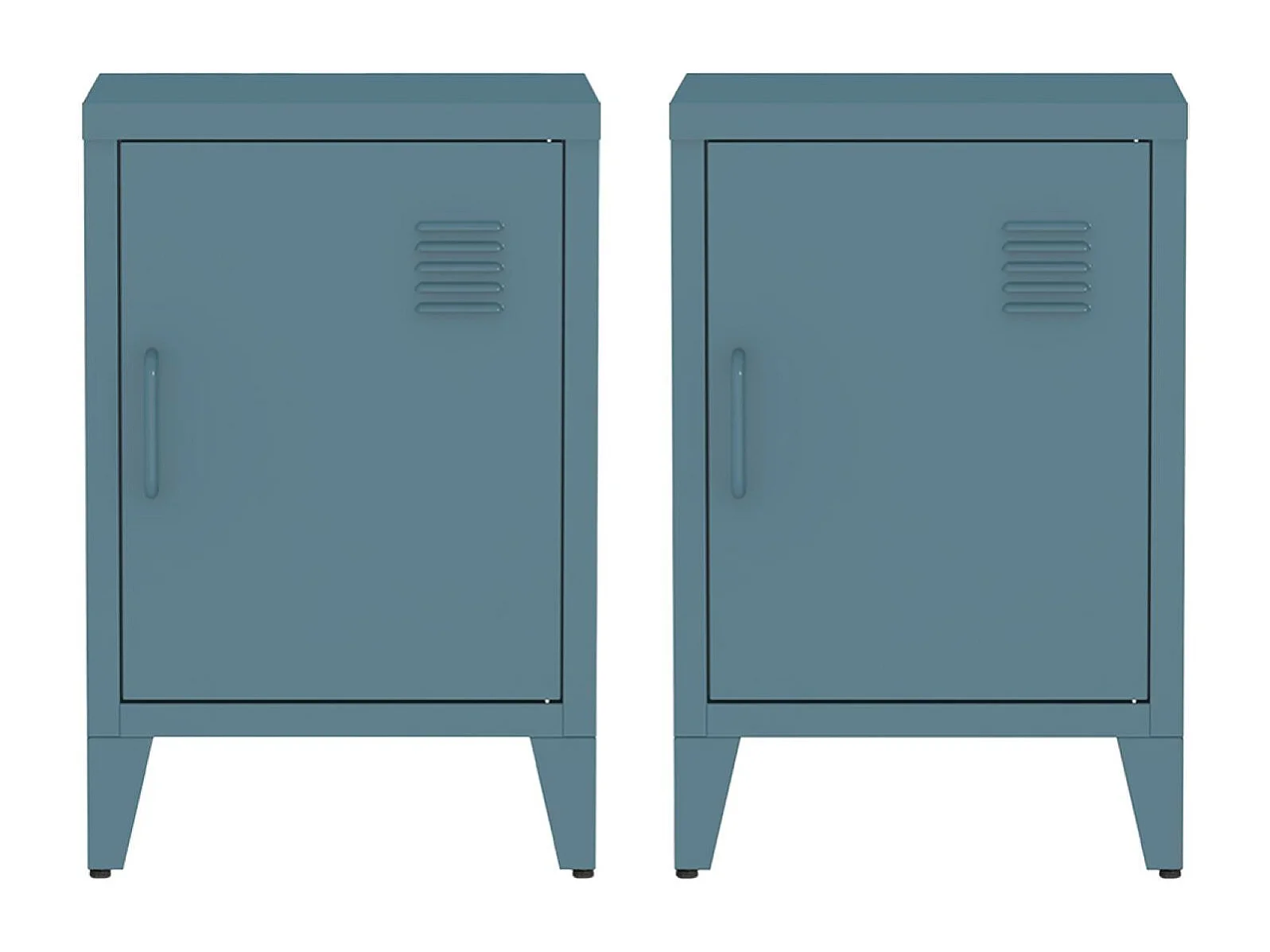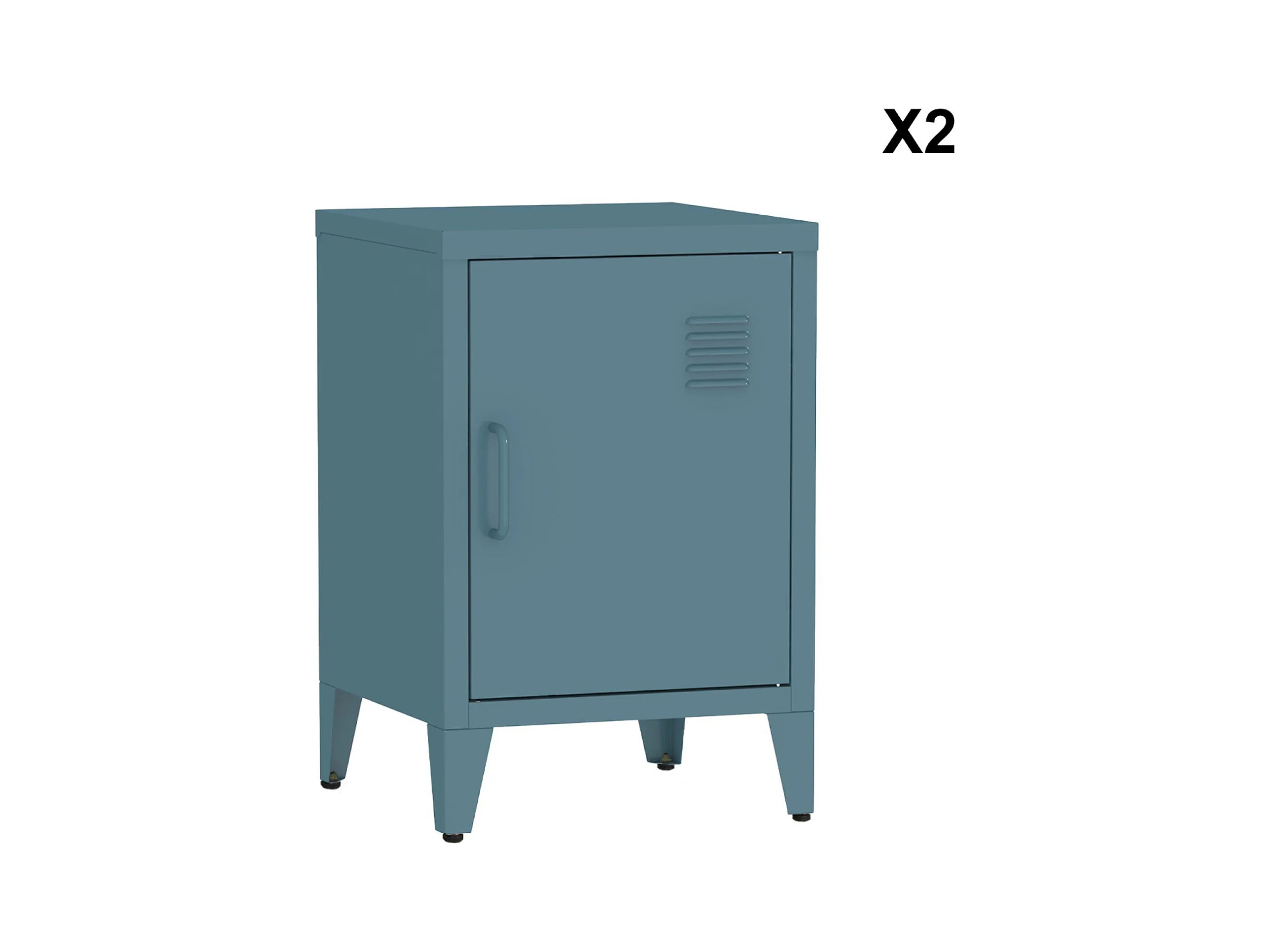 Lot de 2 tables de chevet en acier 1 porte. Bleu pétrole. casier. L 38 x P 38 x H 55.7 cm
