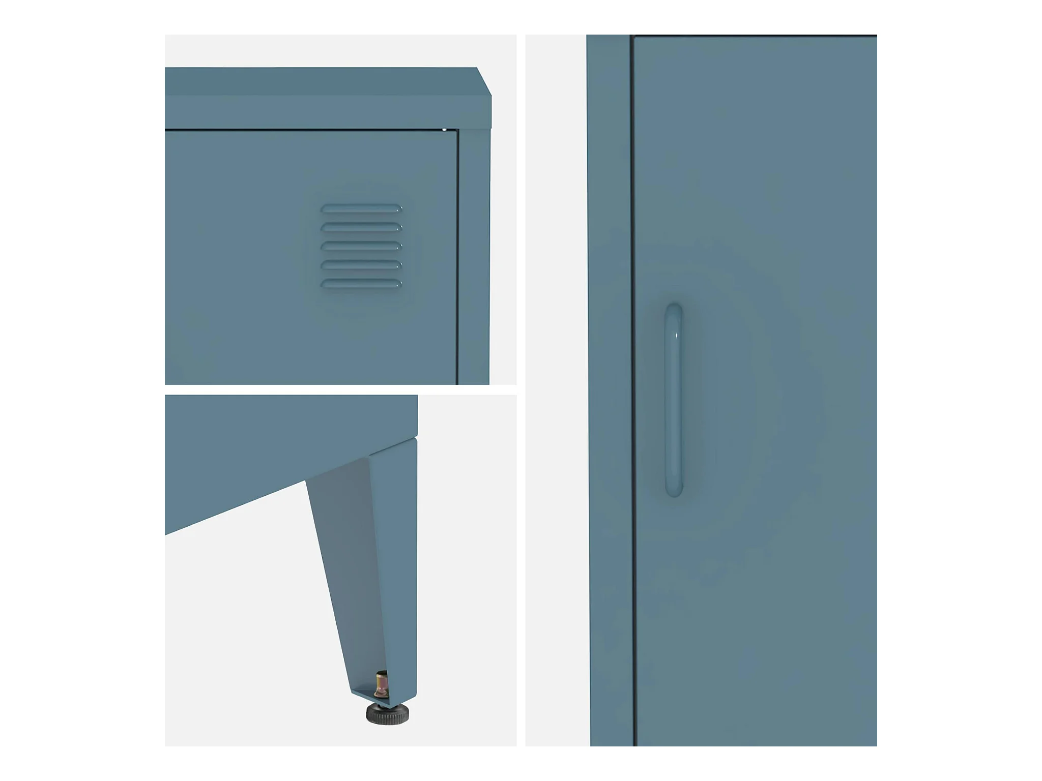 Table de chevet en acier bleu. 1 porte. casier. chambre enfant
