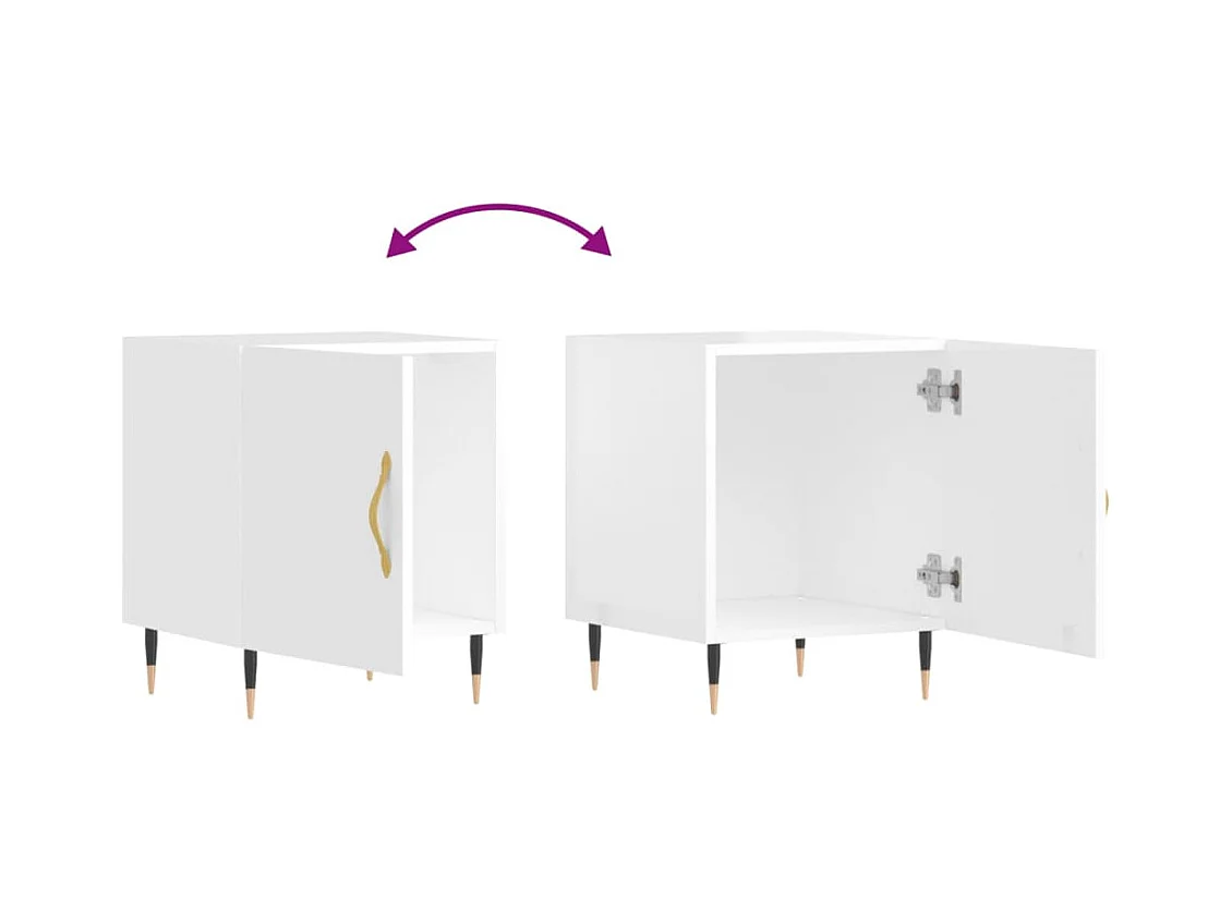 Tables de chevet lot de 2 avec rangement blanc brillant 40x40x50 cm