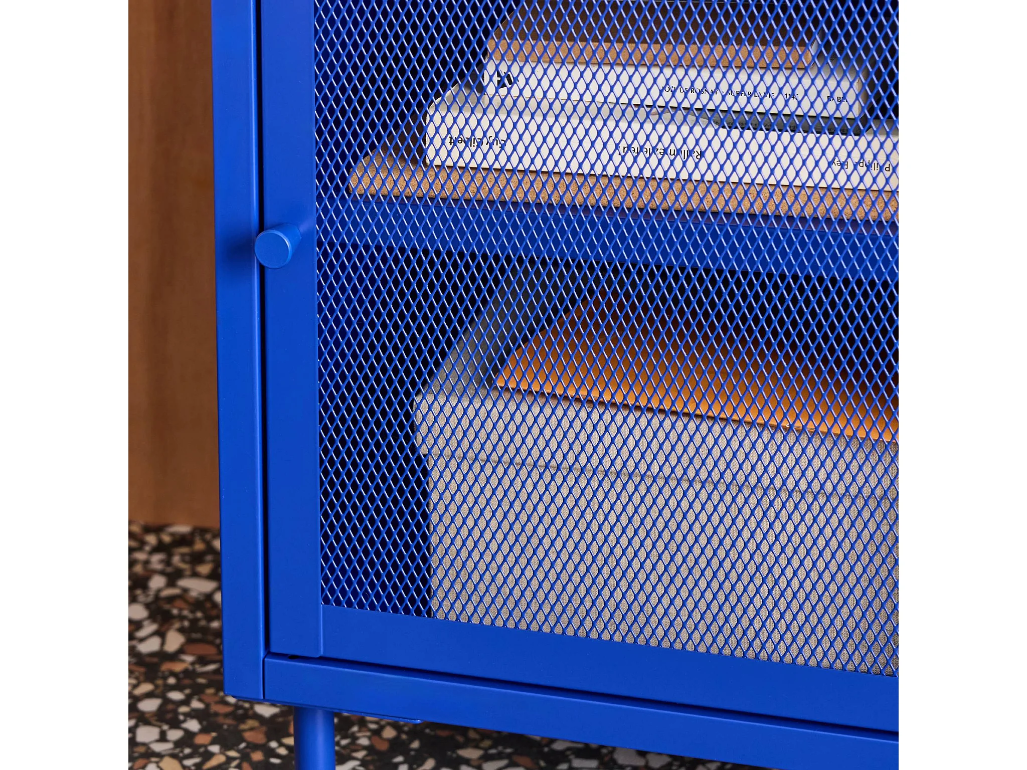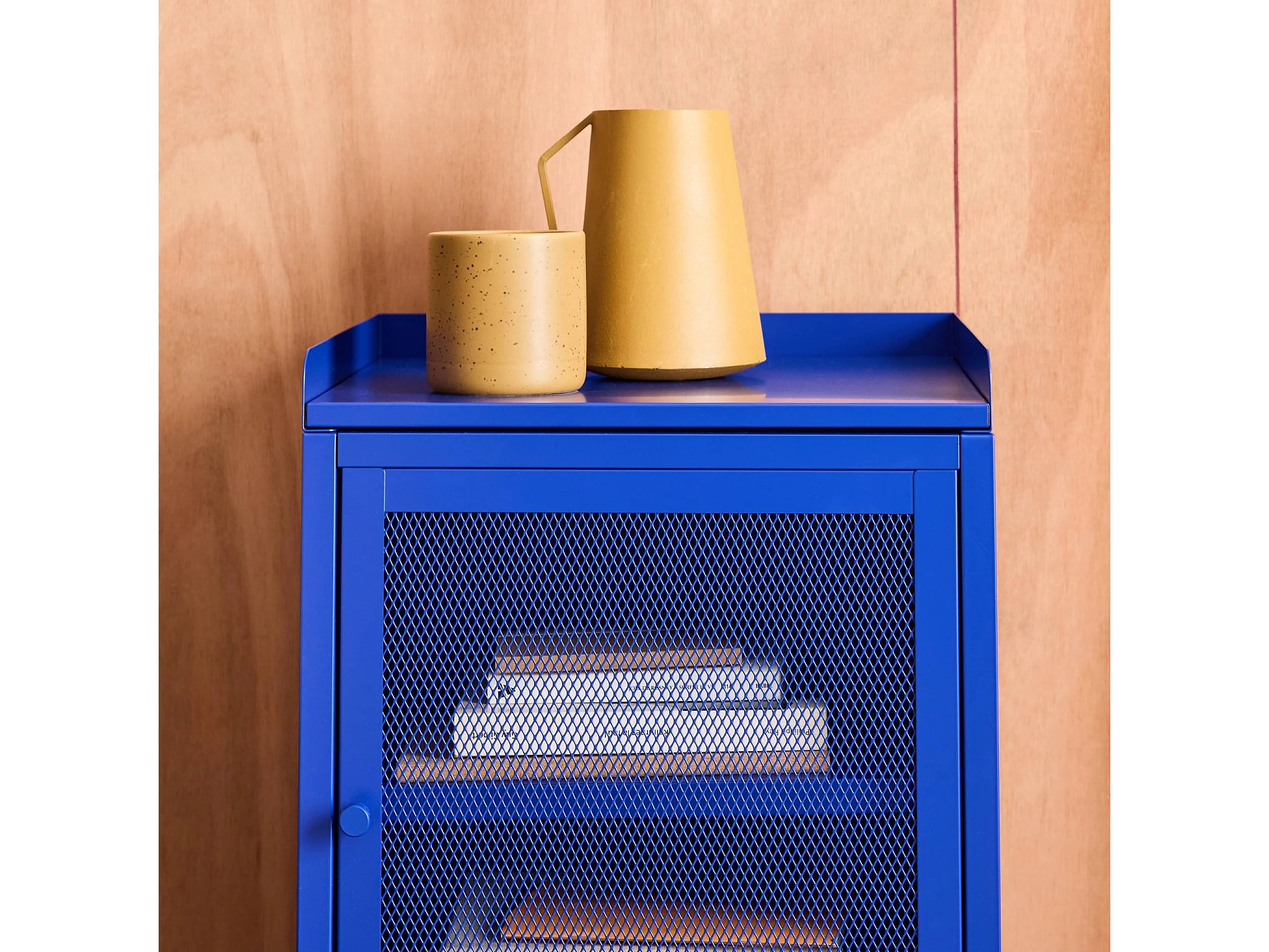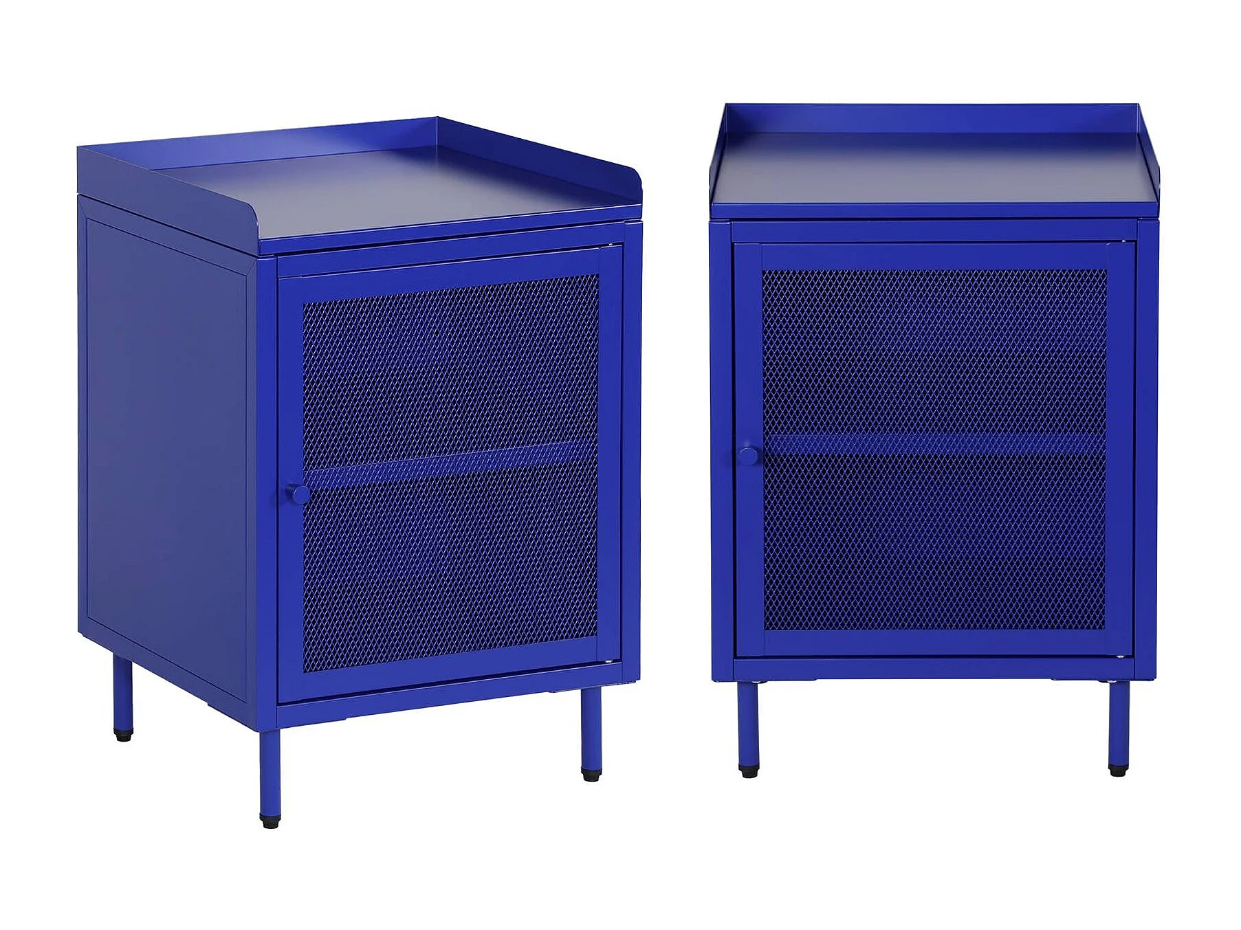 Lot de 2 tables de chevet industrielles métal bleu 1 porte grillagée. 40 x 37 x 58.5 cm - Ohio