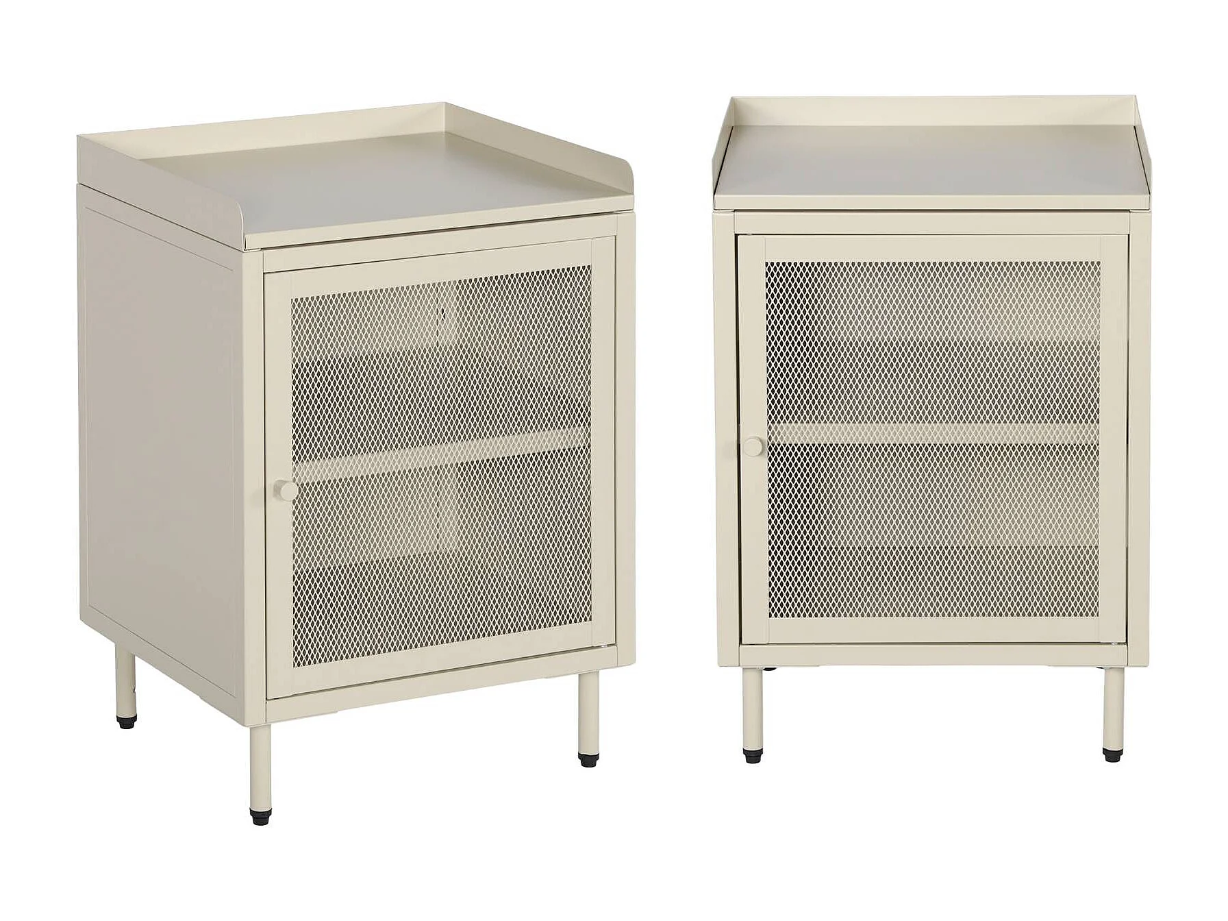 Lot de 2 tables de chevet industrielles métal crème 1 porte grillagée. 40 x 37 x 58.5 cm - Ohio