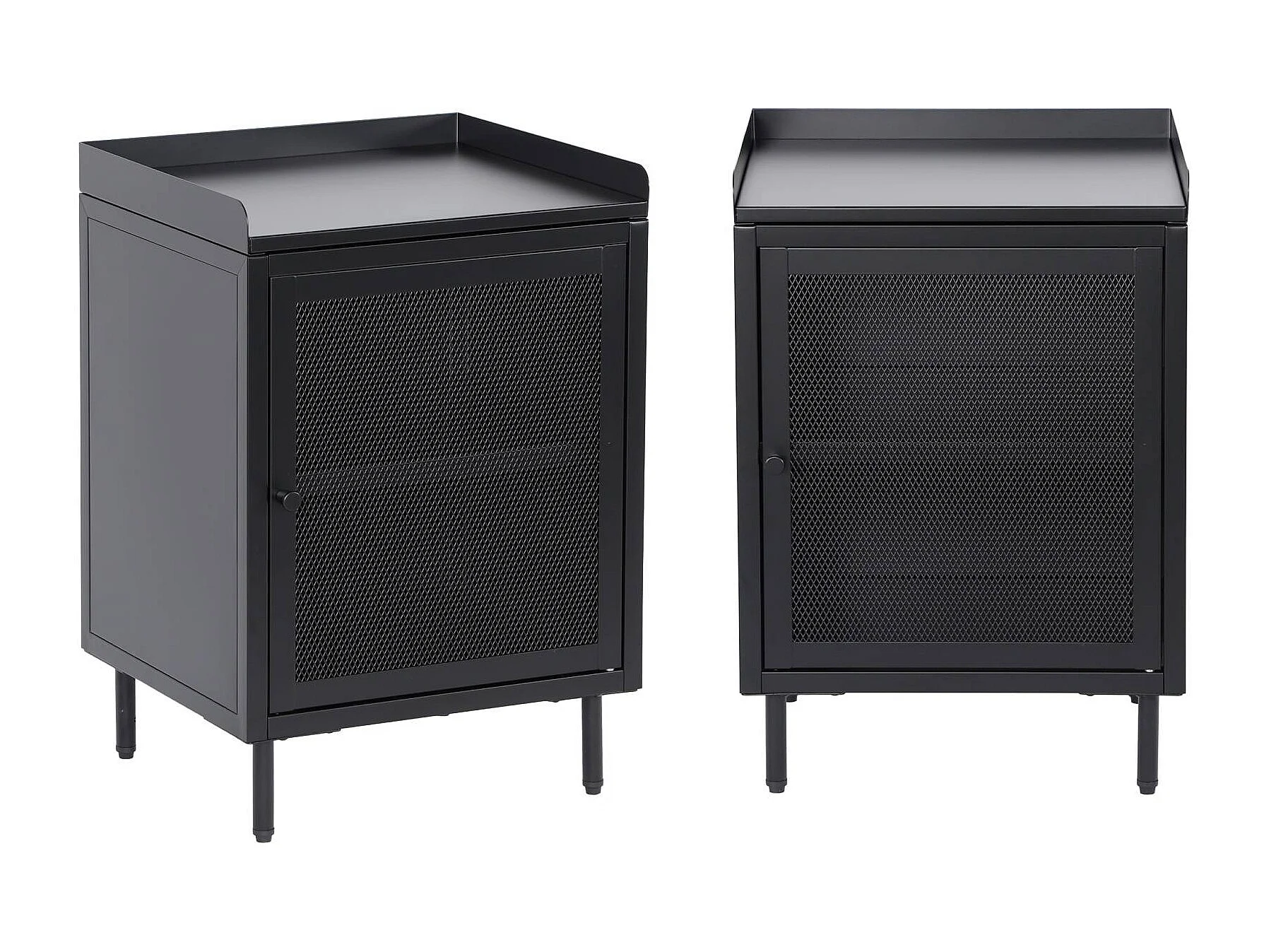 Lot de 2 tables de chevet industrielles métal noir 1 porte grillagée. 40 x 37 x 58.5 cm - Ohio