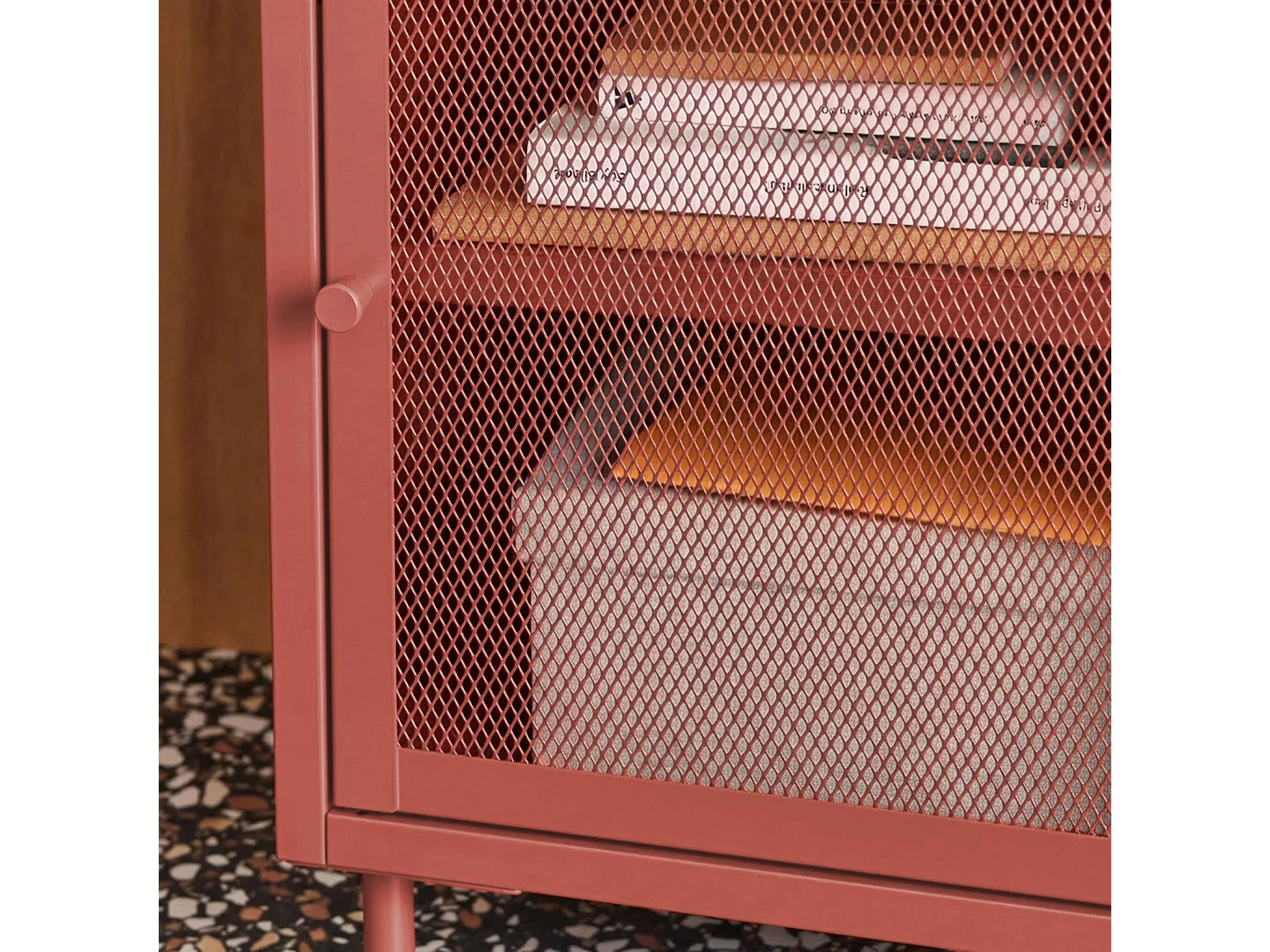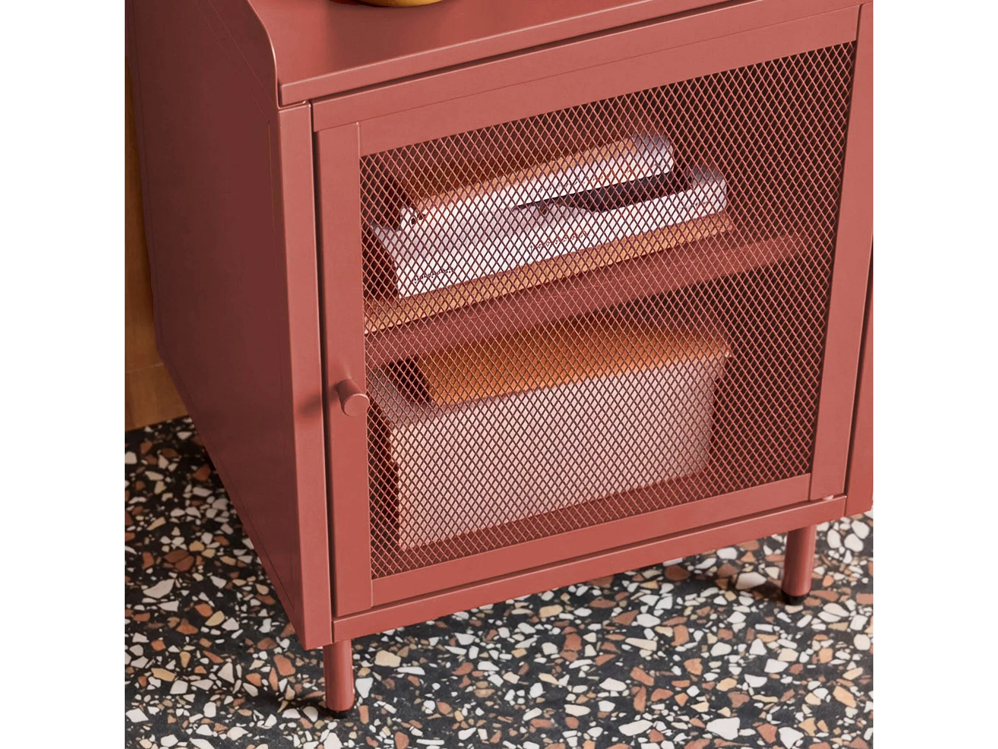 Lot de 2 tables de chevet industrielles métal terracotta 1 porte grillagée. 40 x 37 x 58.5 cm - Ohio