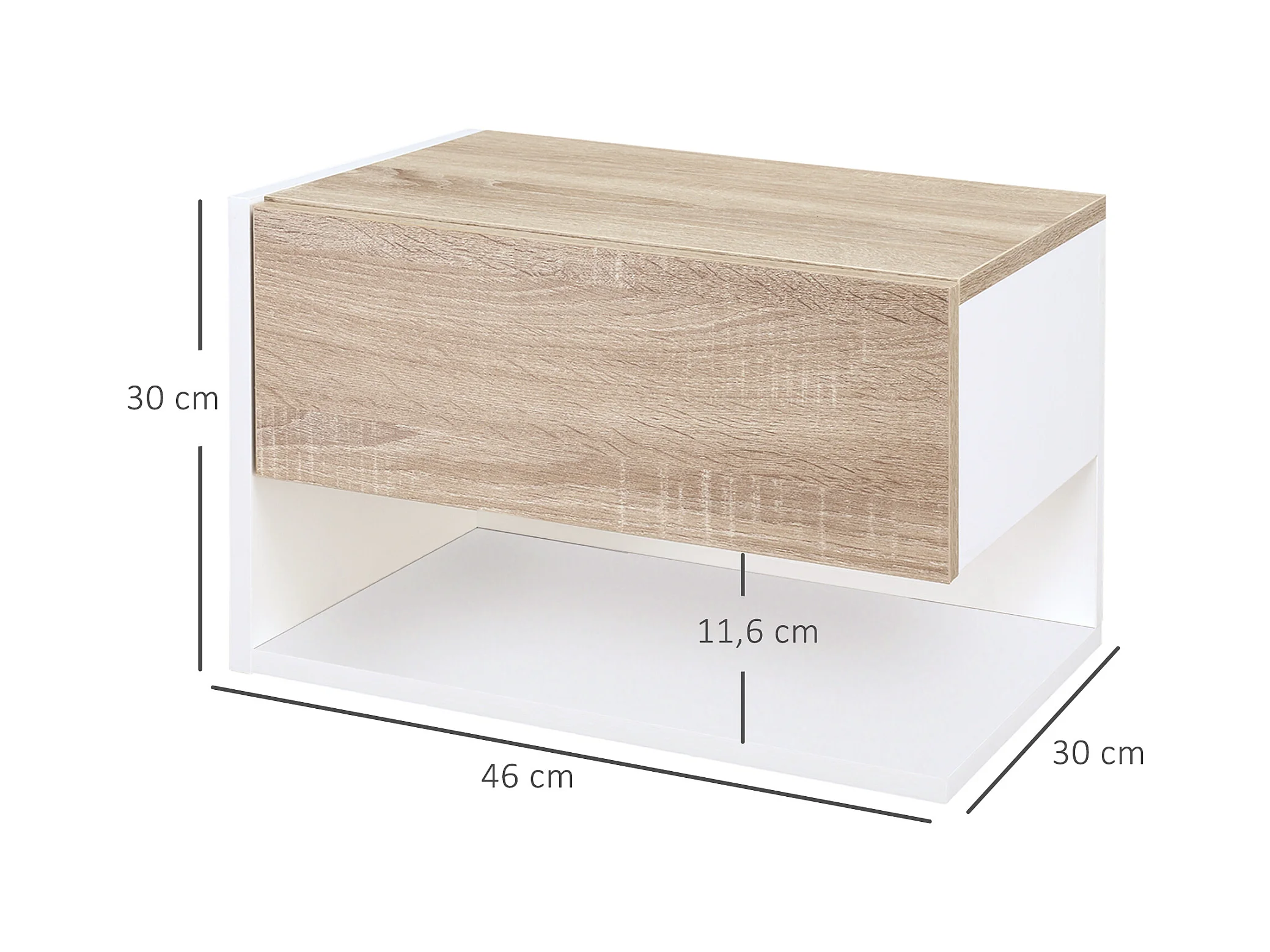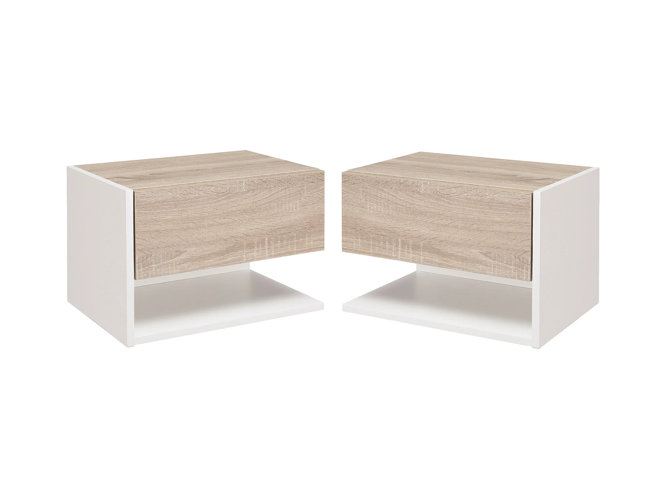 Lot de 2 tables de chevet murales - lot de 2 tables de nuit - tiroir coulissant, étagère, plateau - panneaux particules bicolore aspect chêne clair blanc