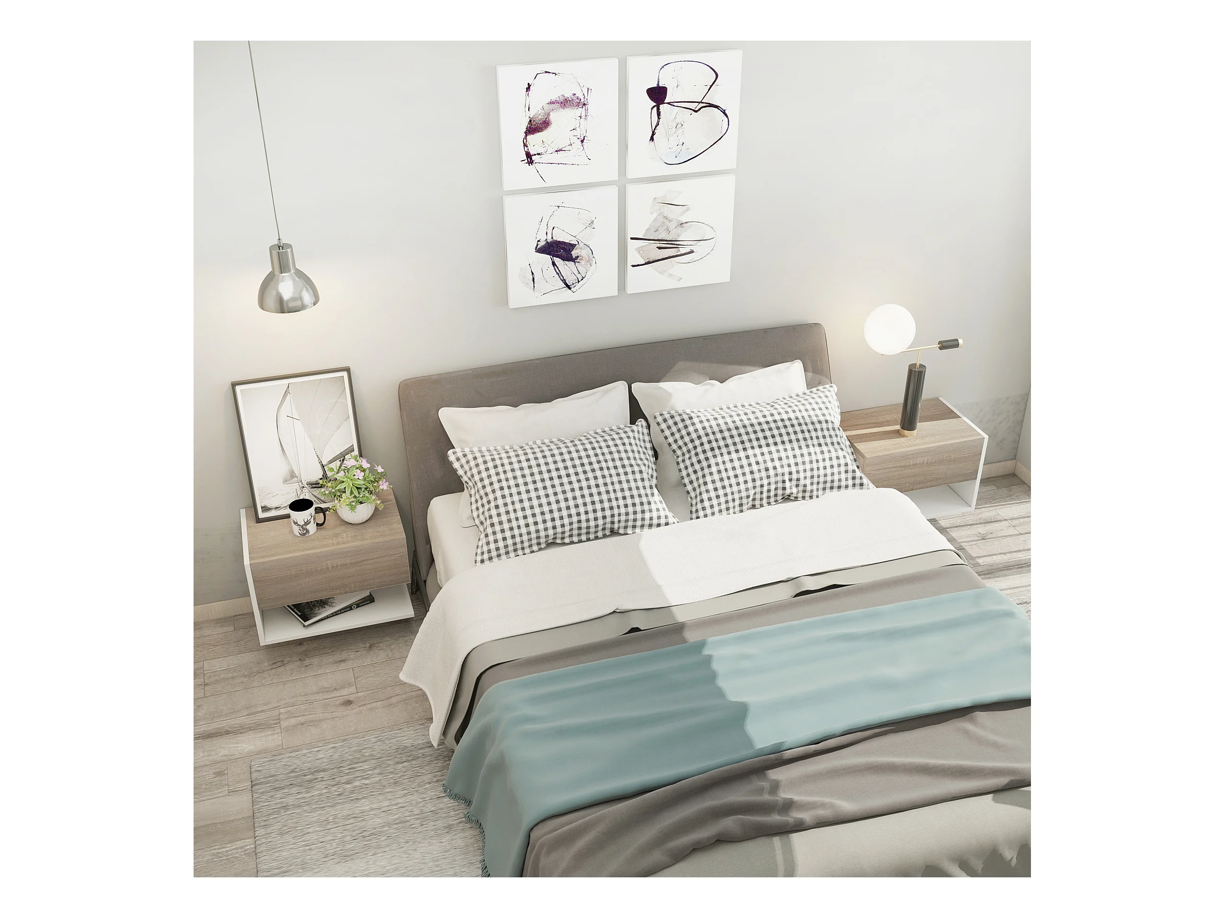 Lot de 2 tables de chevet murales - lot de 2 tables de nuit - tiroir coulissant, étagère - aspect chêne clair blanc