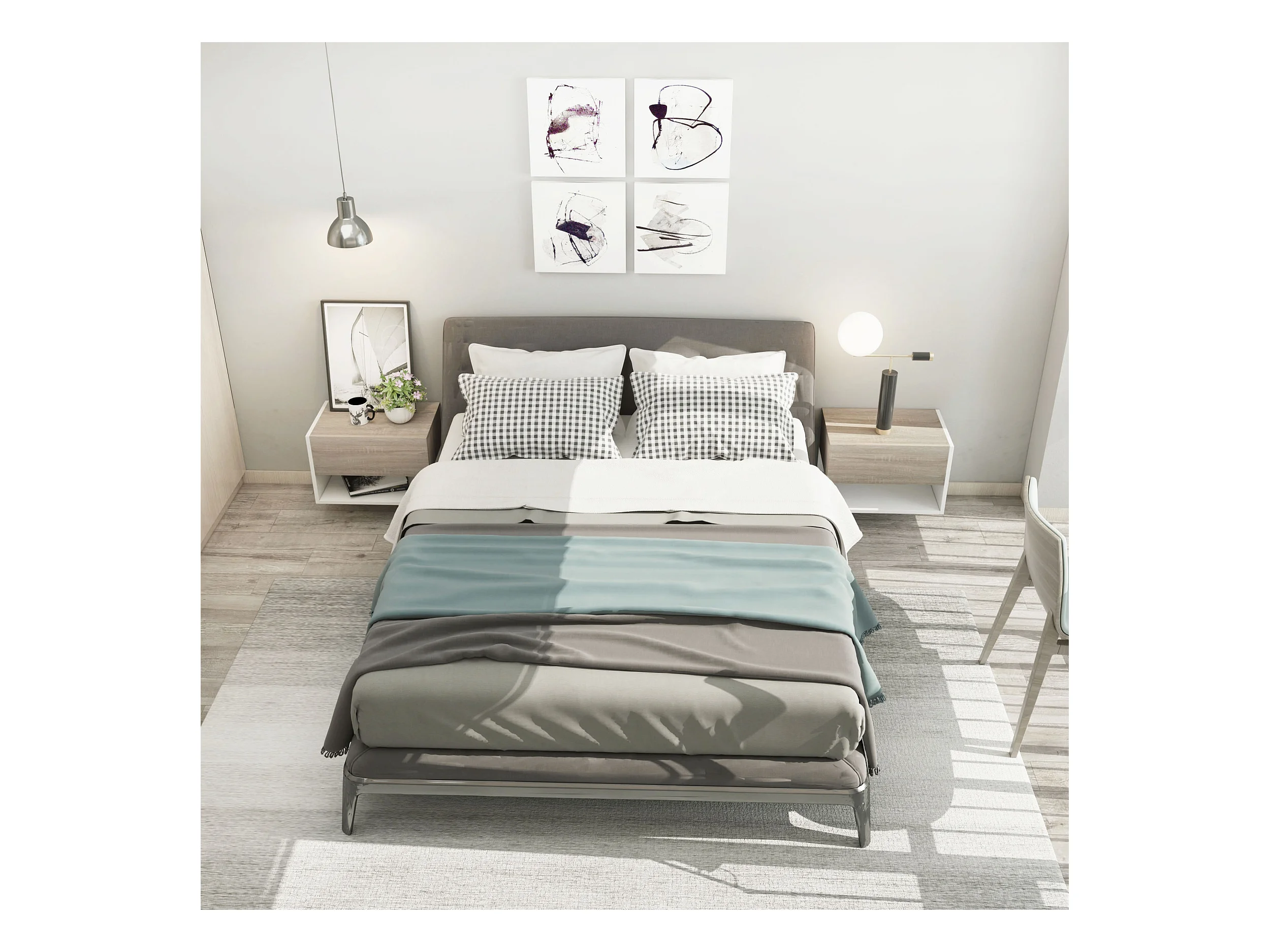Lot de 2 tables de chevet murales - lot de 2 tables de nuit - tiroir coulissant, niche et plateau - panneau particules aspect chêne clair