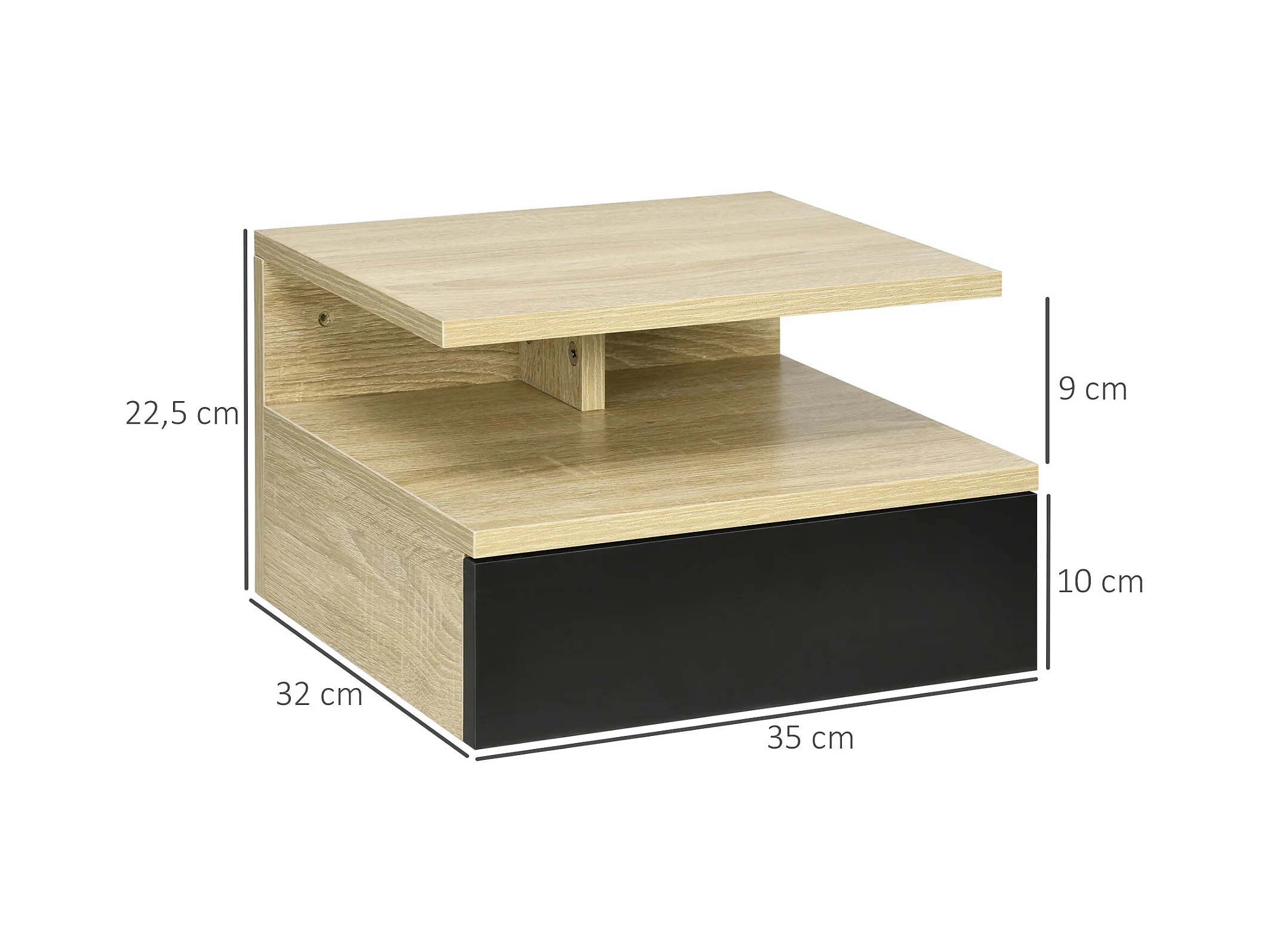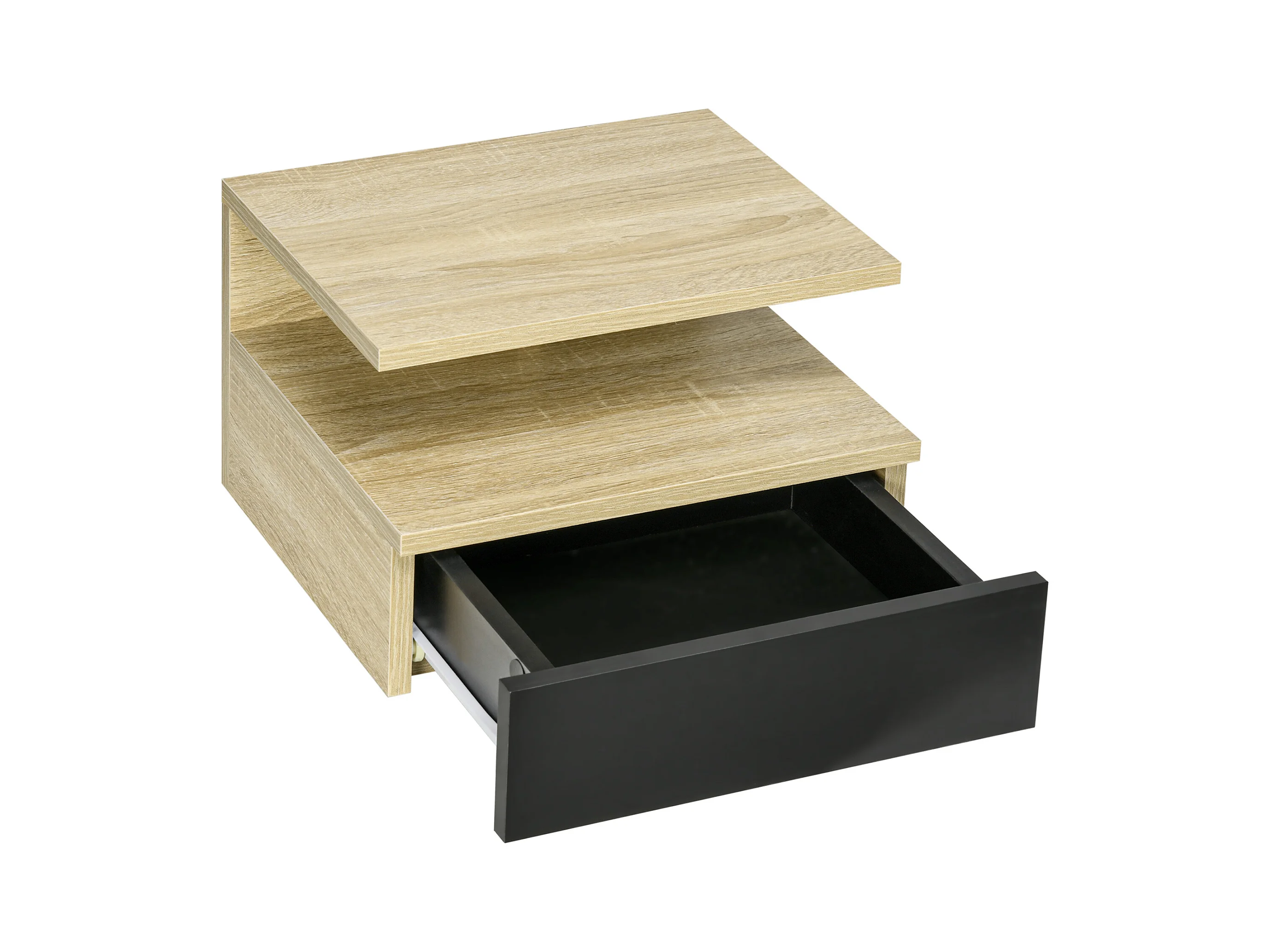 Lot de 2 tables de chevet murales - lot de 2 tables de nuit - tiroir coulissant, étagère - aspect chêne clair noir