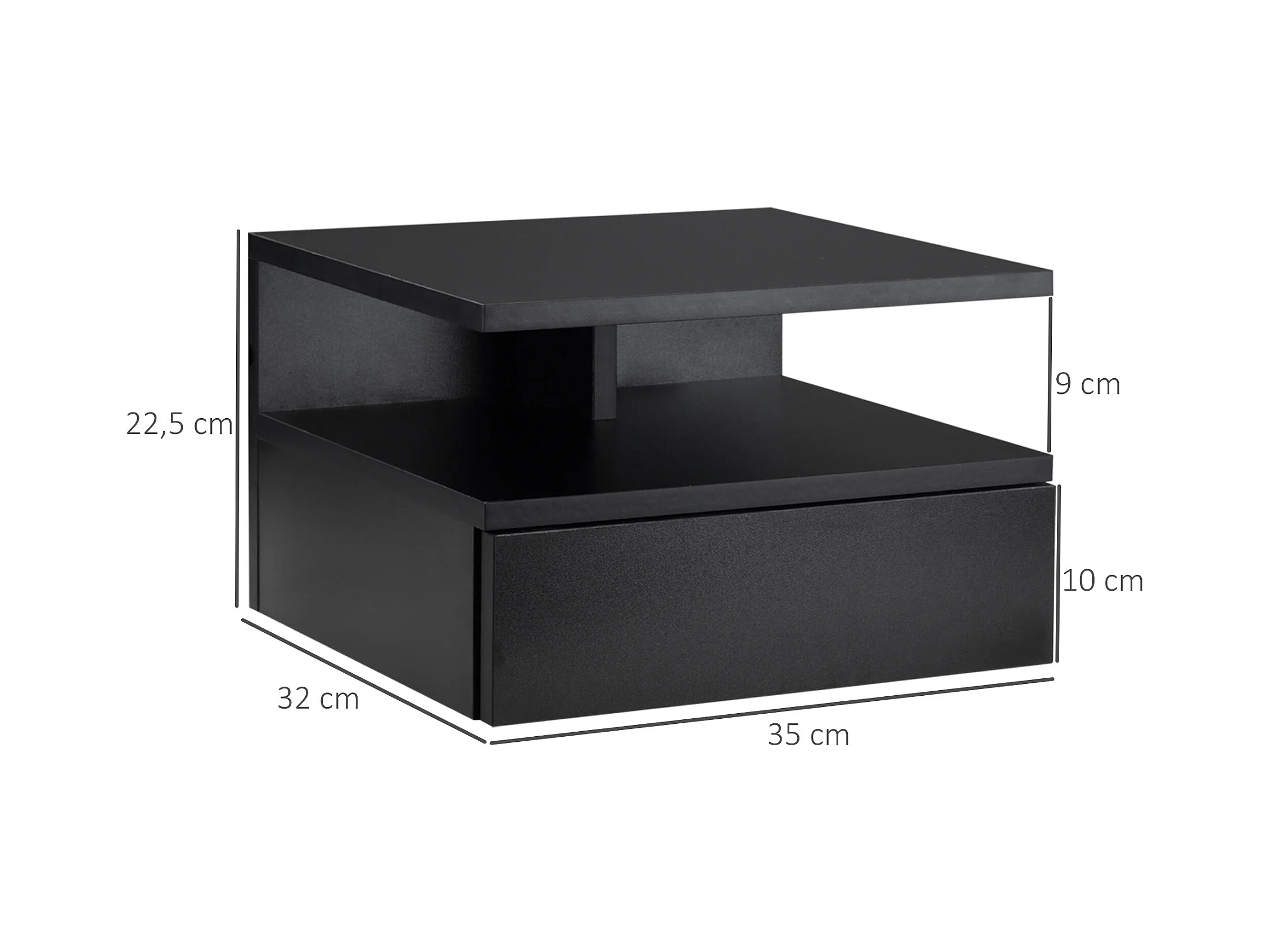 Lot de 2 chevets tables de nuit murales - tiroir coulissant, niche, plateau - dim. 37L x 32l x 21H cm - panneaux noir