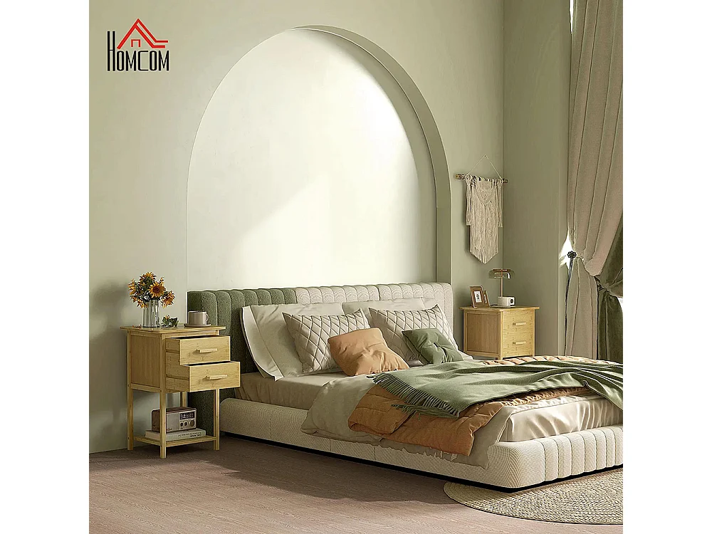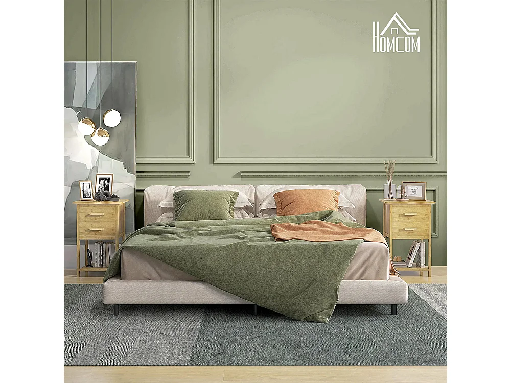 Lot de 2 tables de chevet table de nuit en bambou avec 2 tiroirs et 1 étagère 40 x 34 x 60 cm, naturel