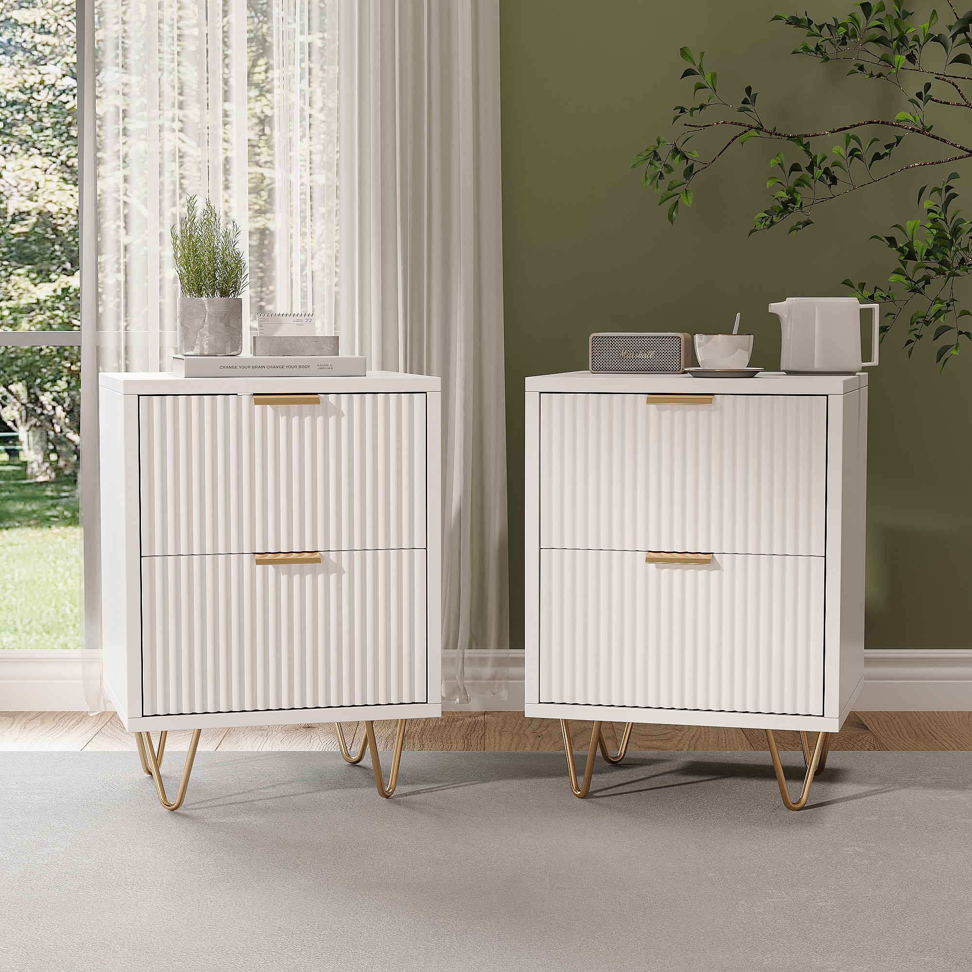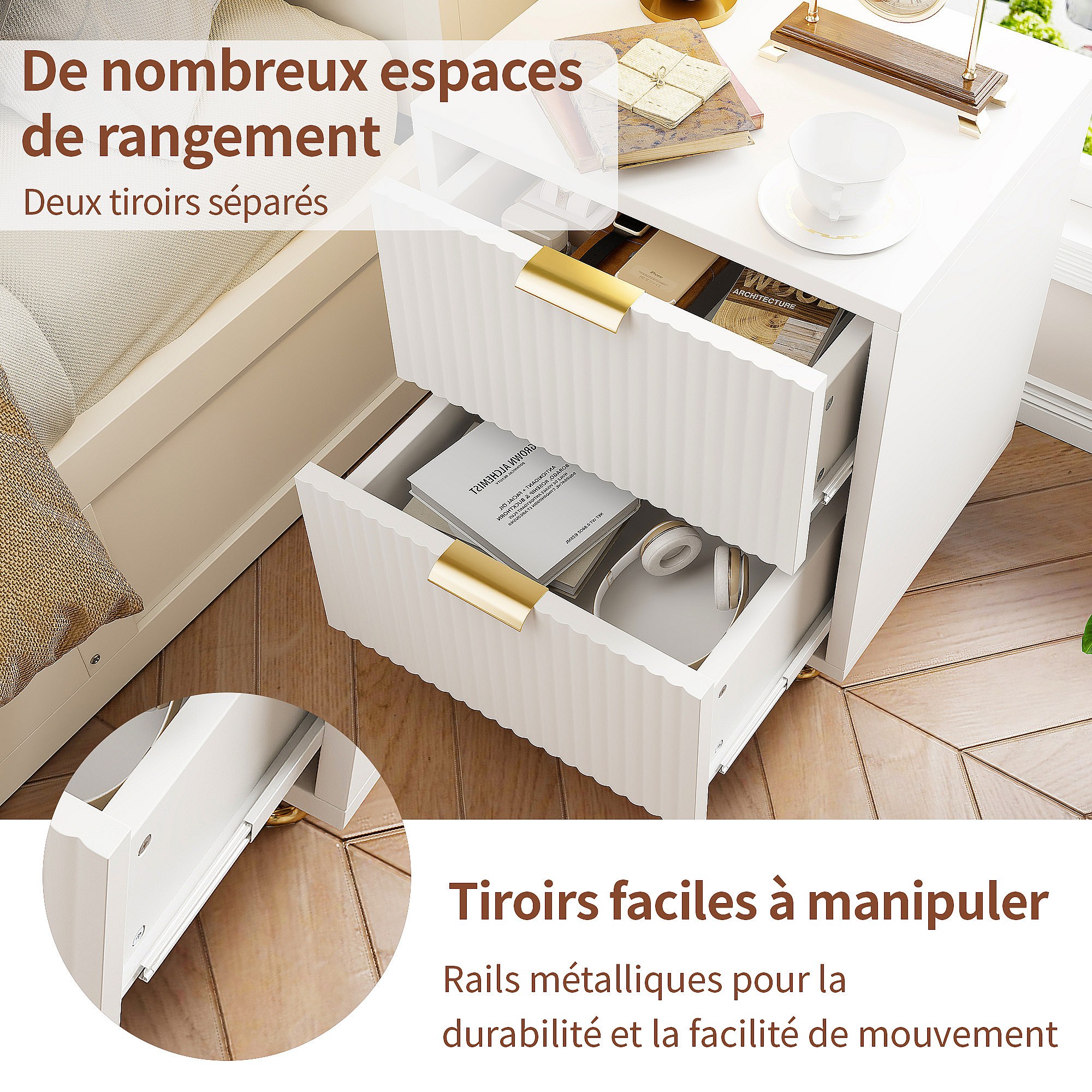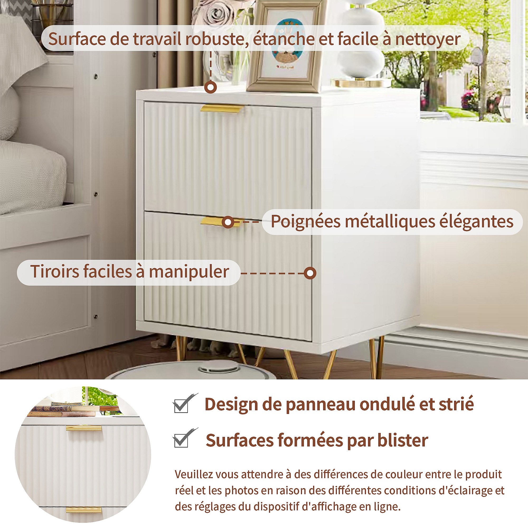 Lot de 2 Tables de Chevet, Tables d'appoint avec 2 tiroirs, Moderne Blanc Table de Nuit avec Pieds dorés, Blanc