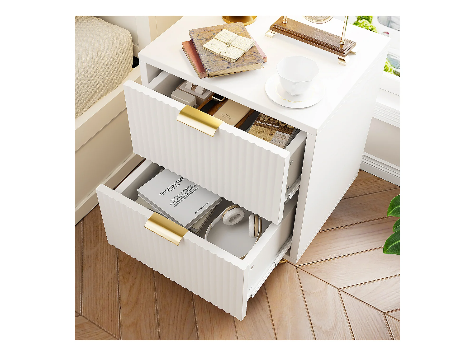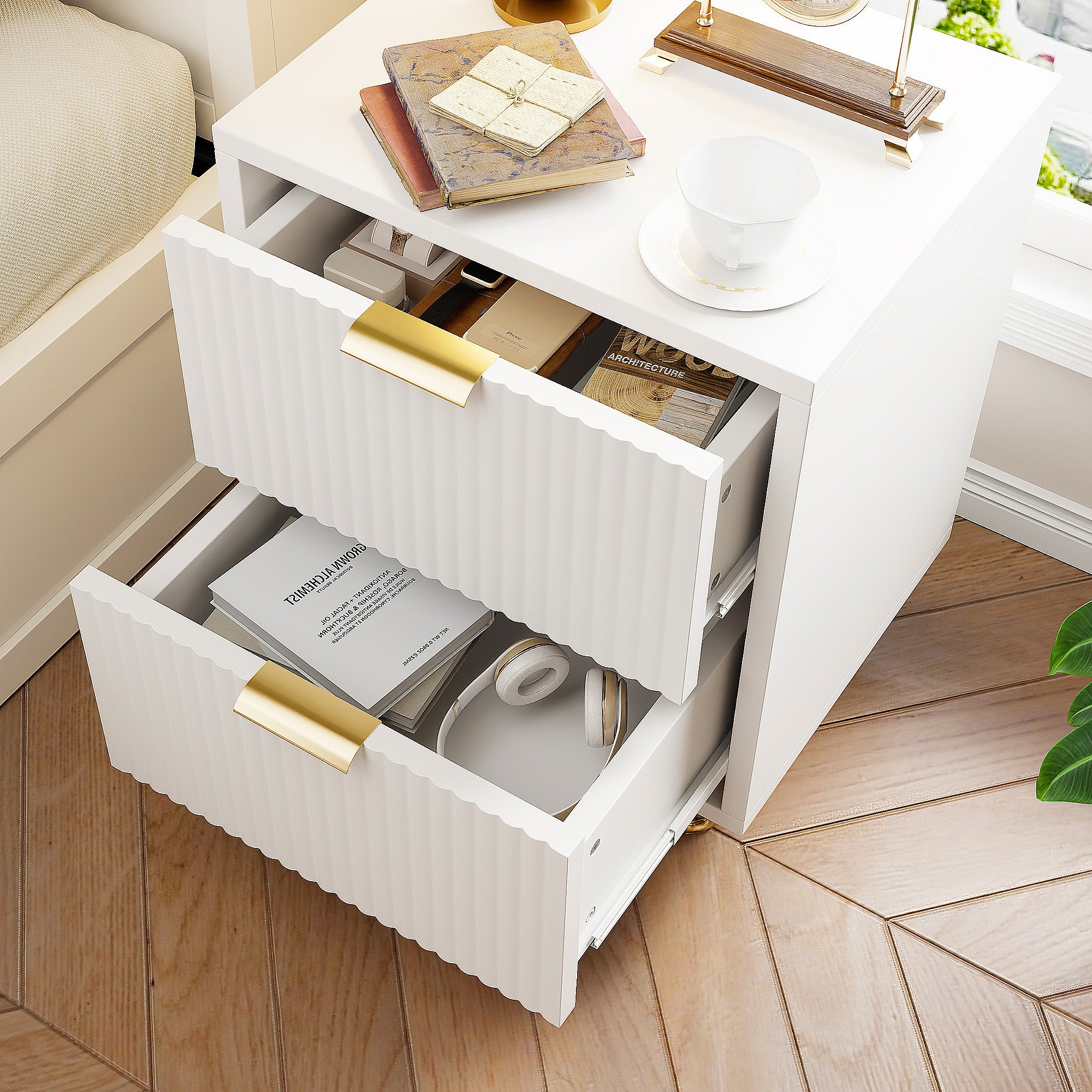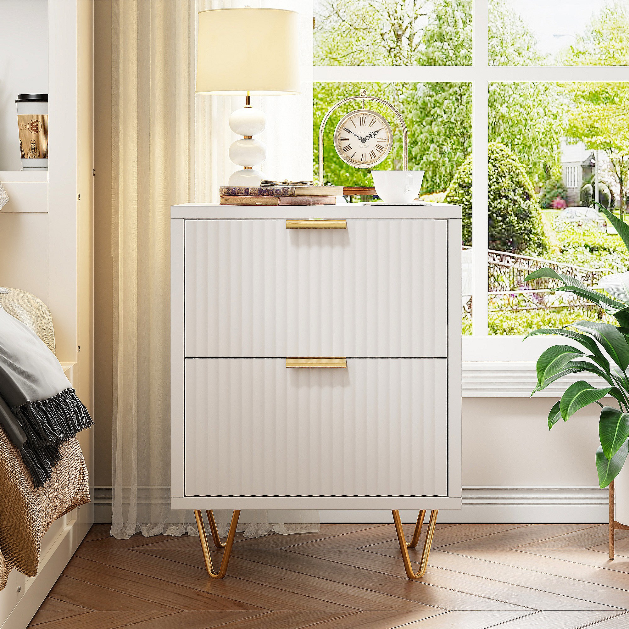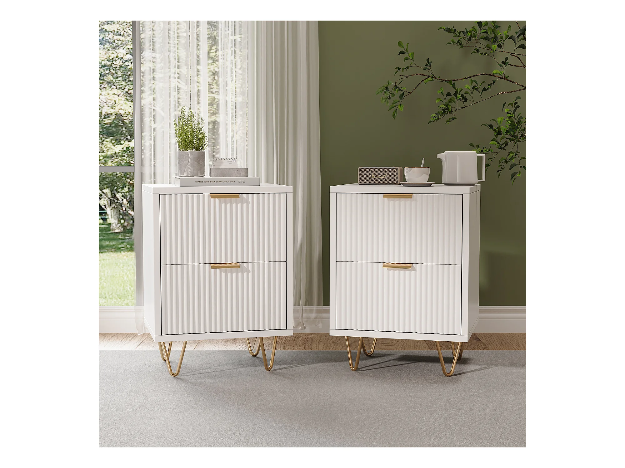 Lot de 2 Tables de Chevet, Tables d'appoint avec 2 tiroirs, Moderne Blanc Table de Nuit avec Pieds dorés, Blanc