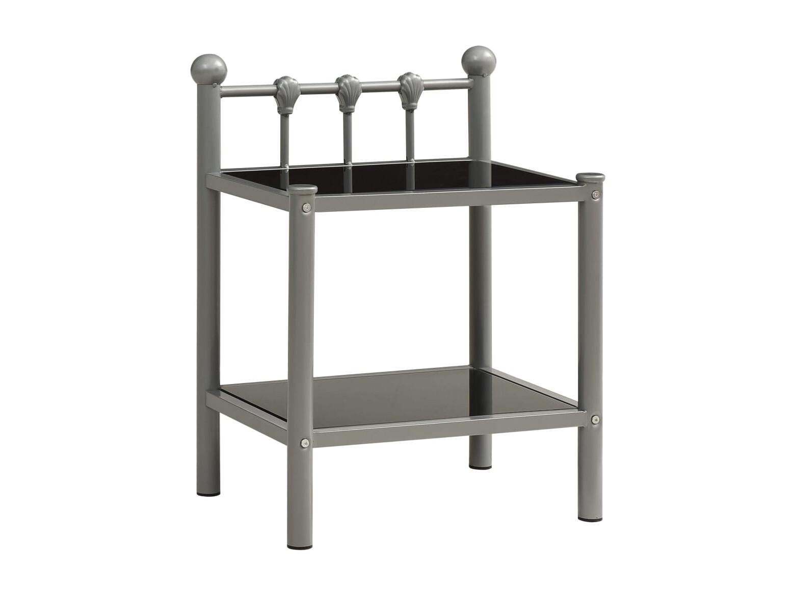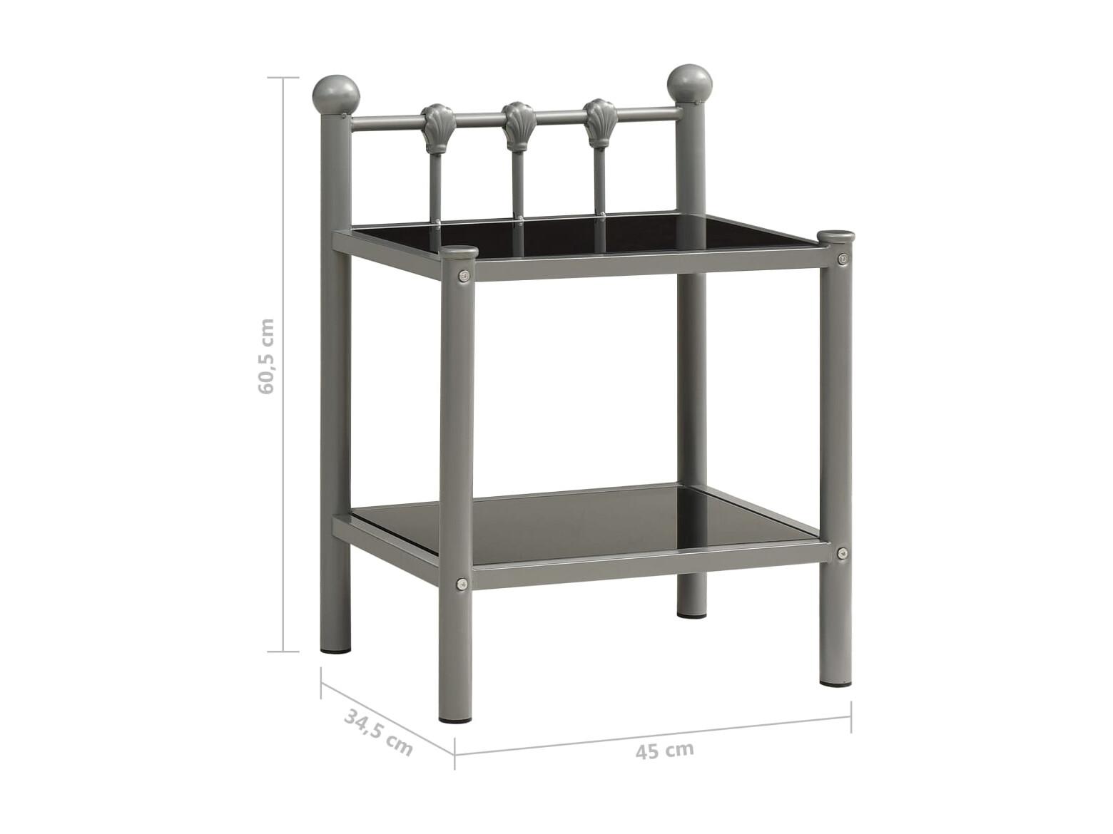 Lot de 2 Tables de chevet-Tables d'appoint avec Compartiments Ouverts Gris et noir Métal et verre