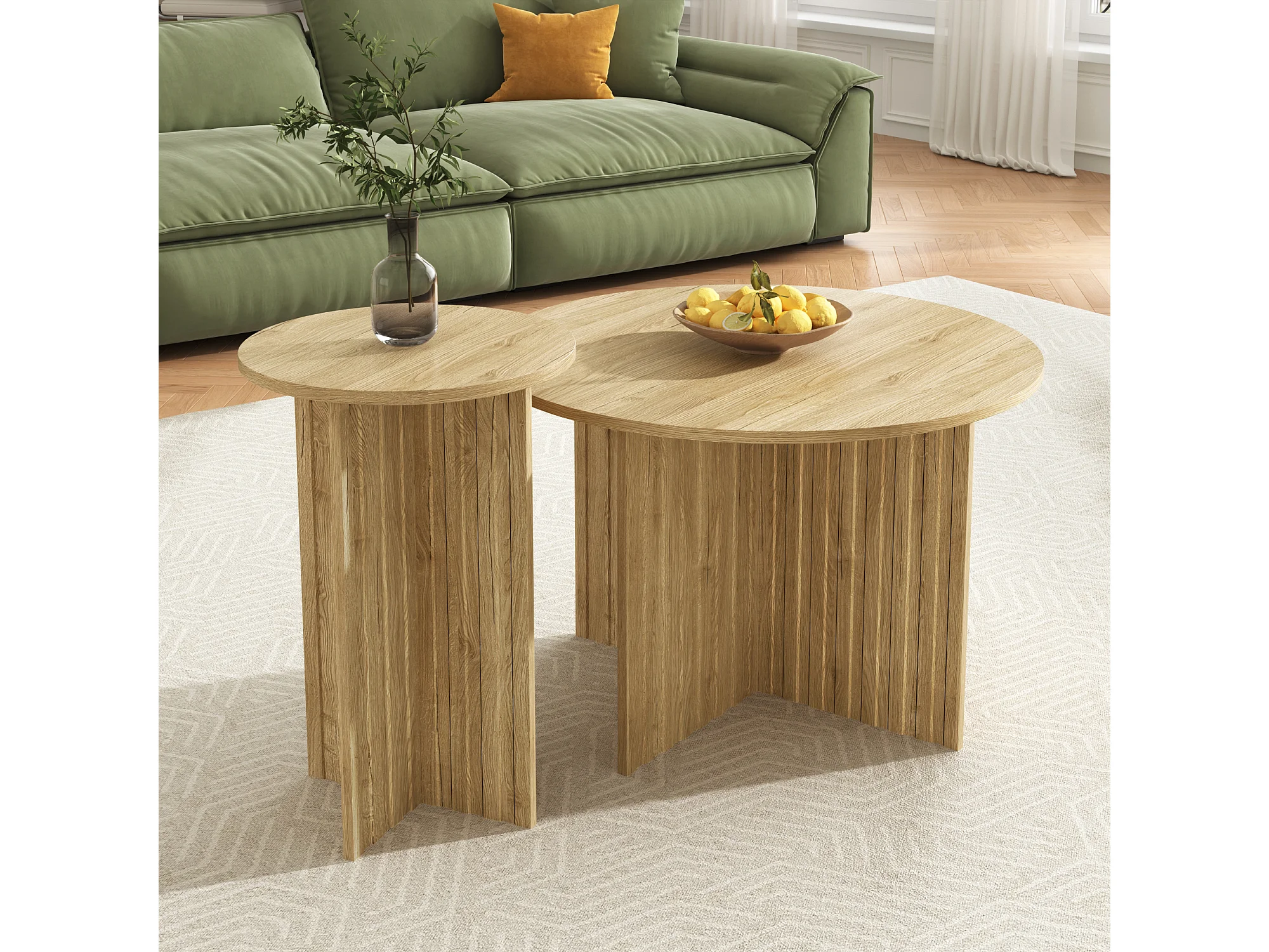 Lot de 2 tables gigognes modernes en bois, Ø76cm et Ø40cm, polyvalentes, en MDF et PB, naturel clair