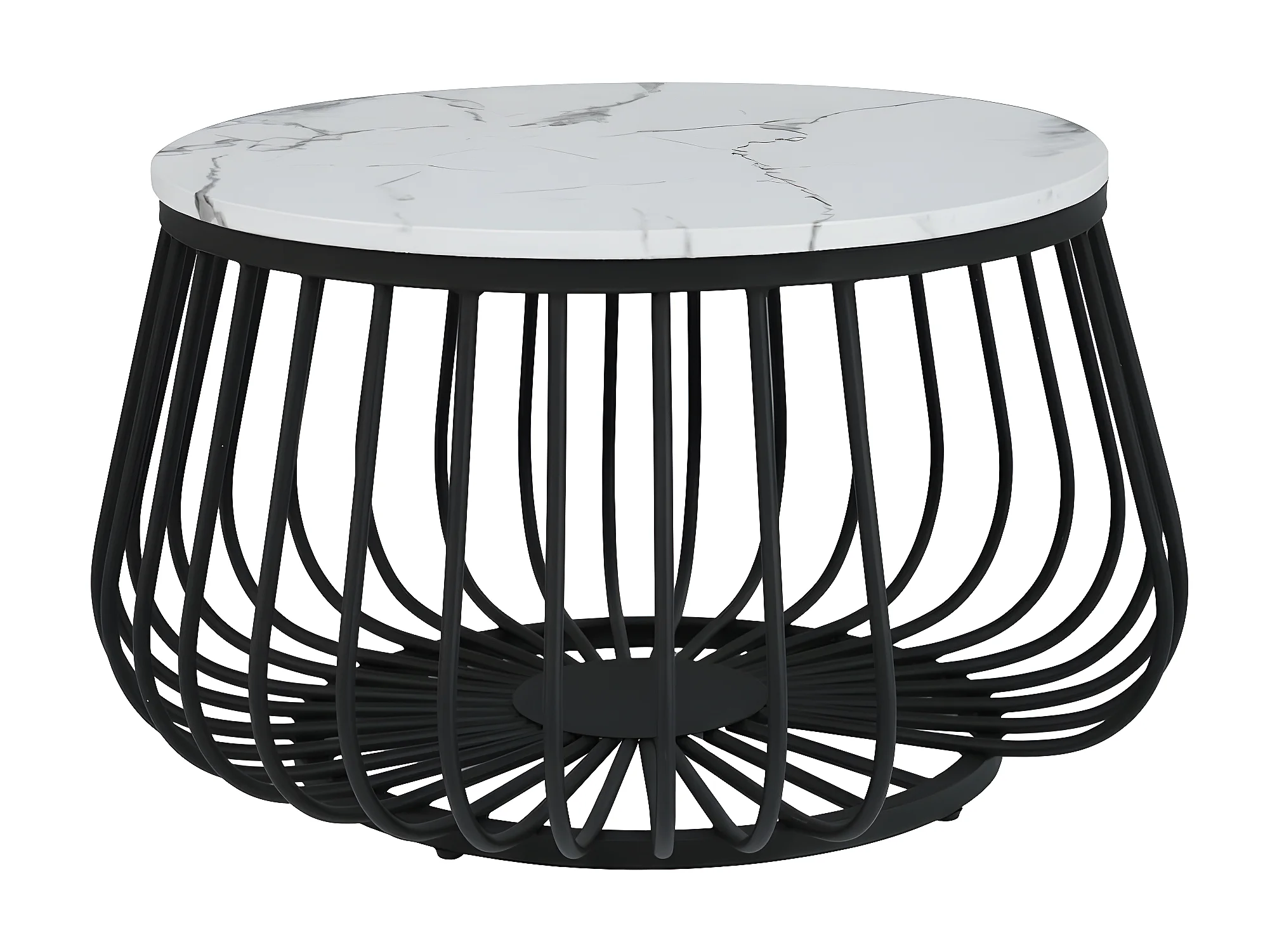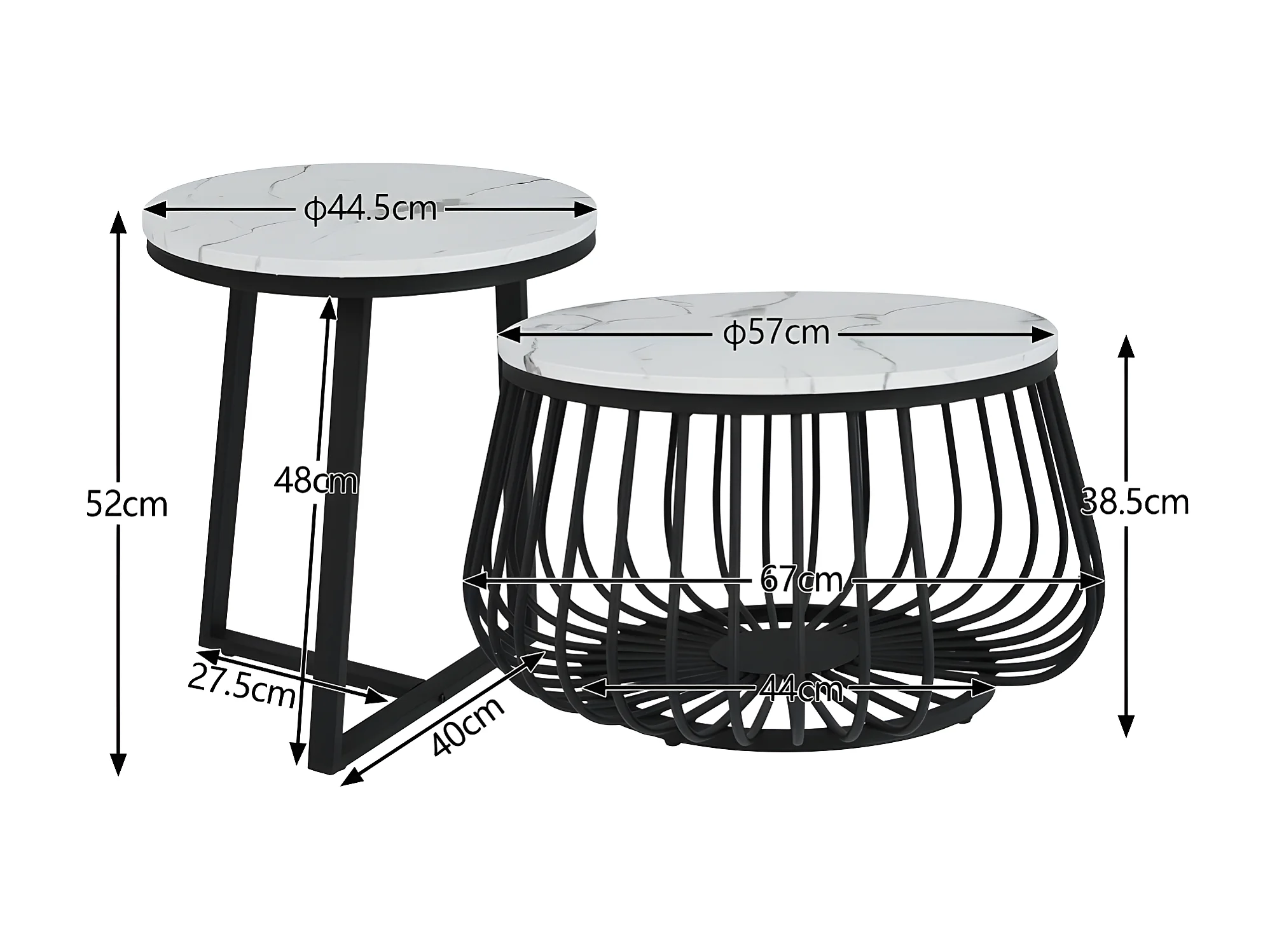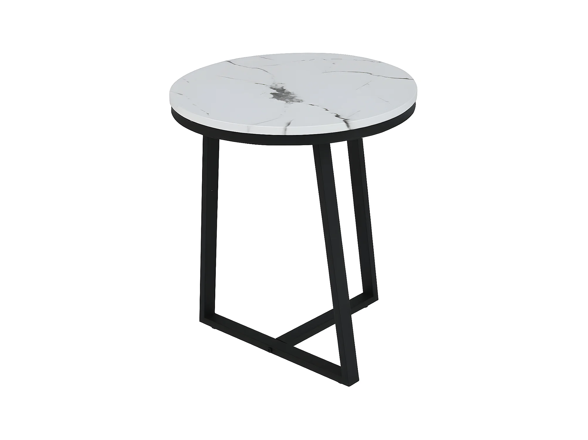 Lot de 2 Tables gigognes - plateau en MDF à motif de marbre - Blanc