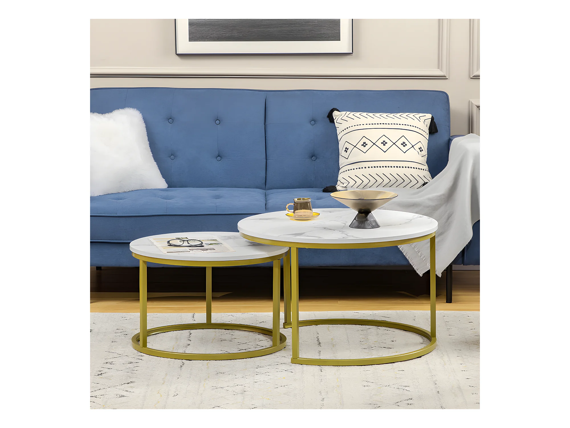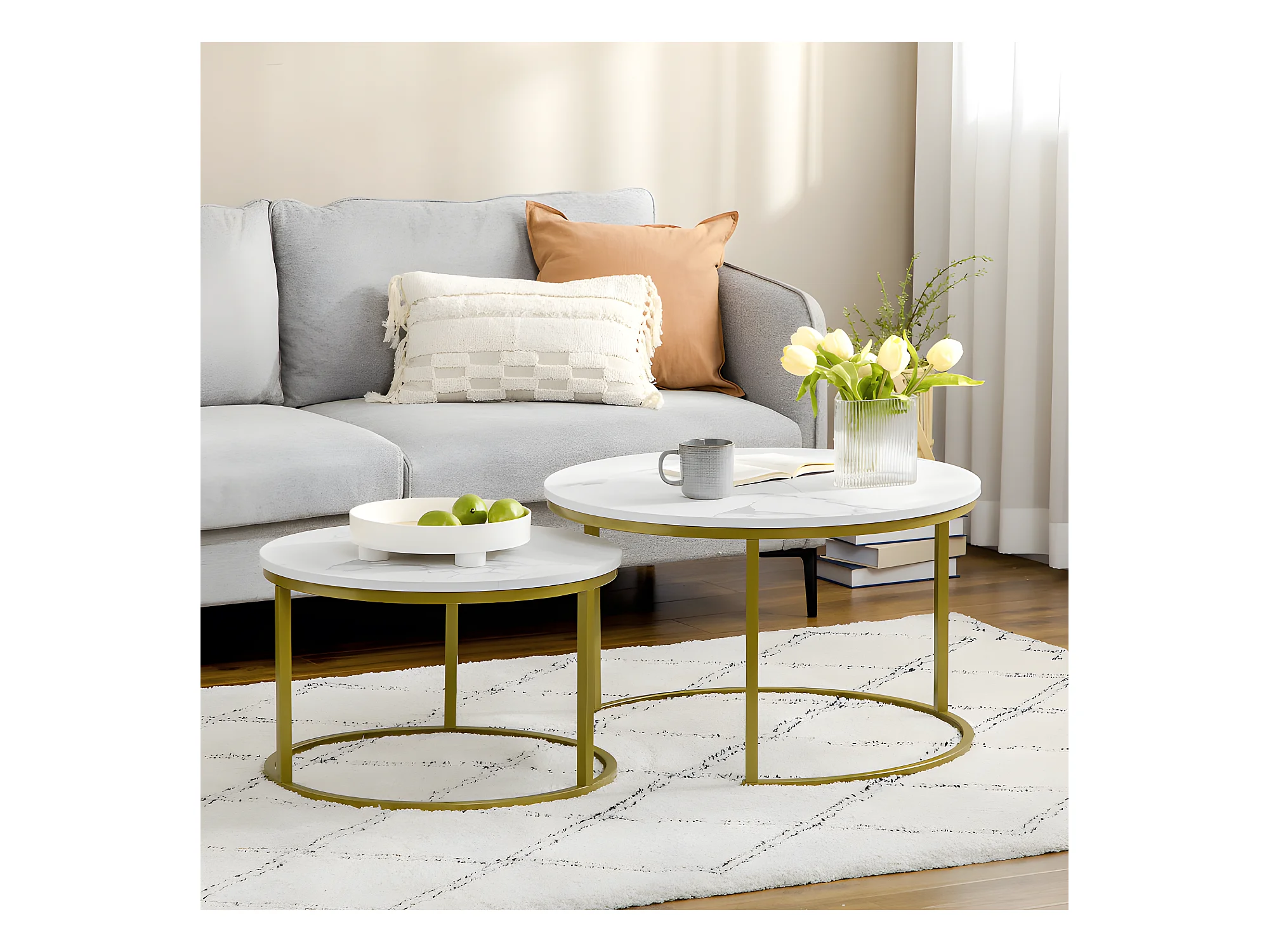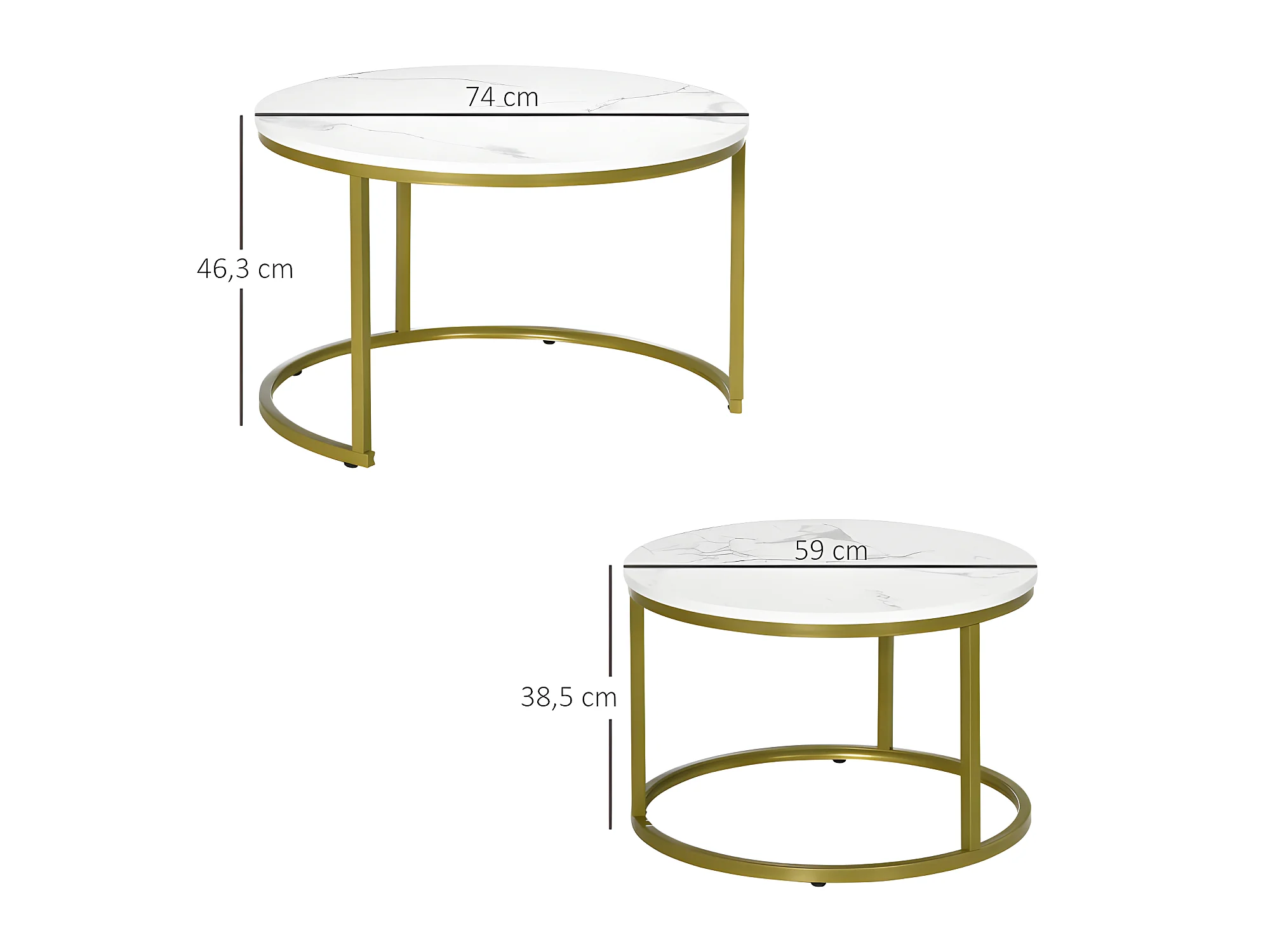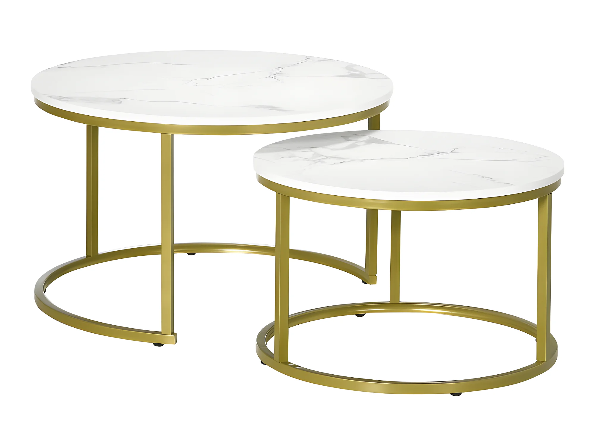 Lot de 2 tables gigognes rondes MARSALA aspect marbre blanc