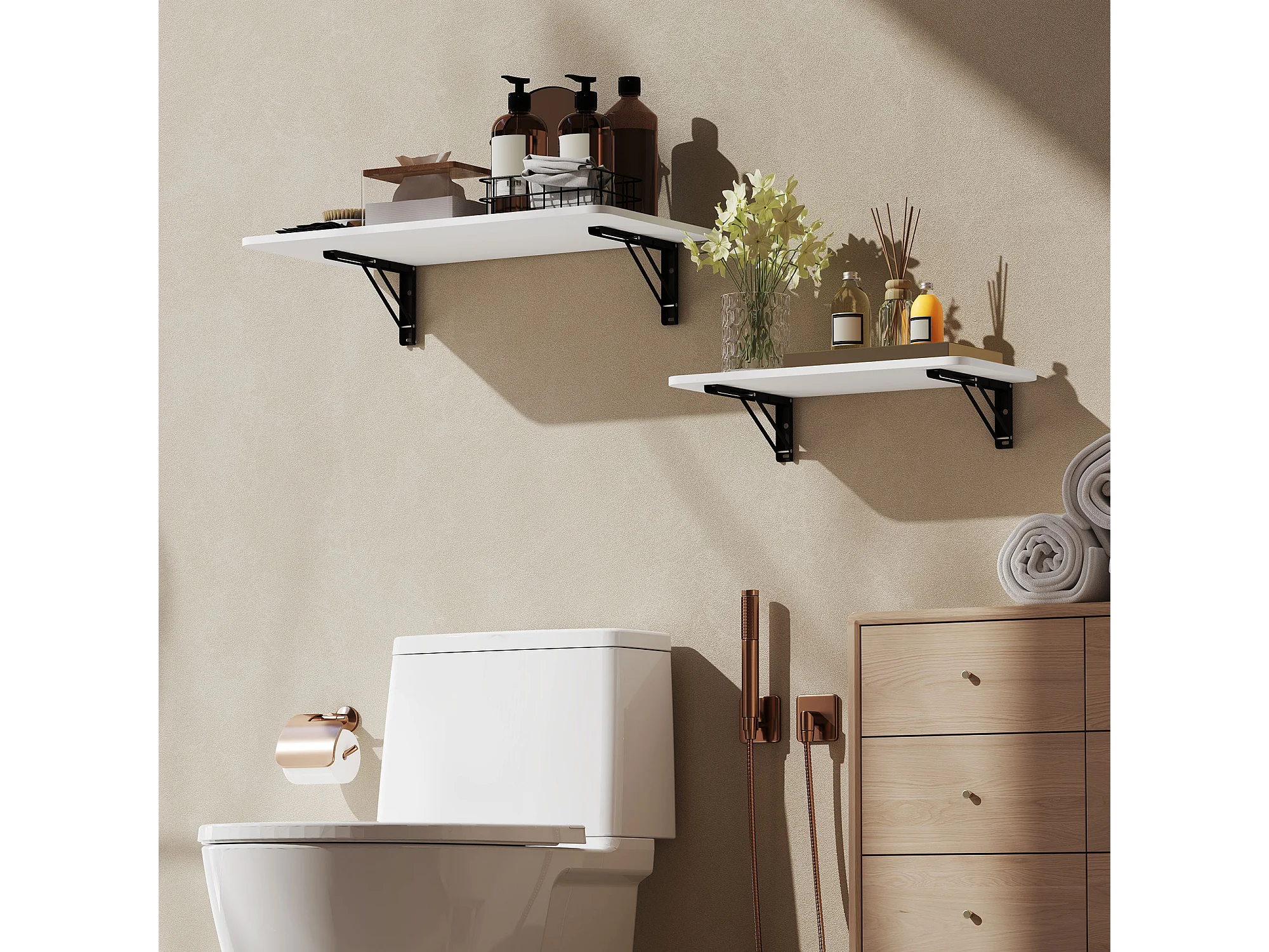 Lot de 2 tablettes rabattables - étagères murales pliables - métal noir blanc laqué