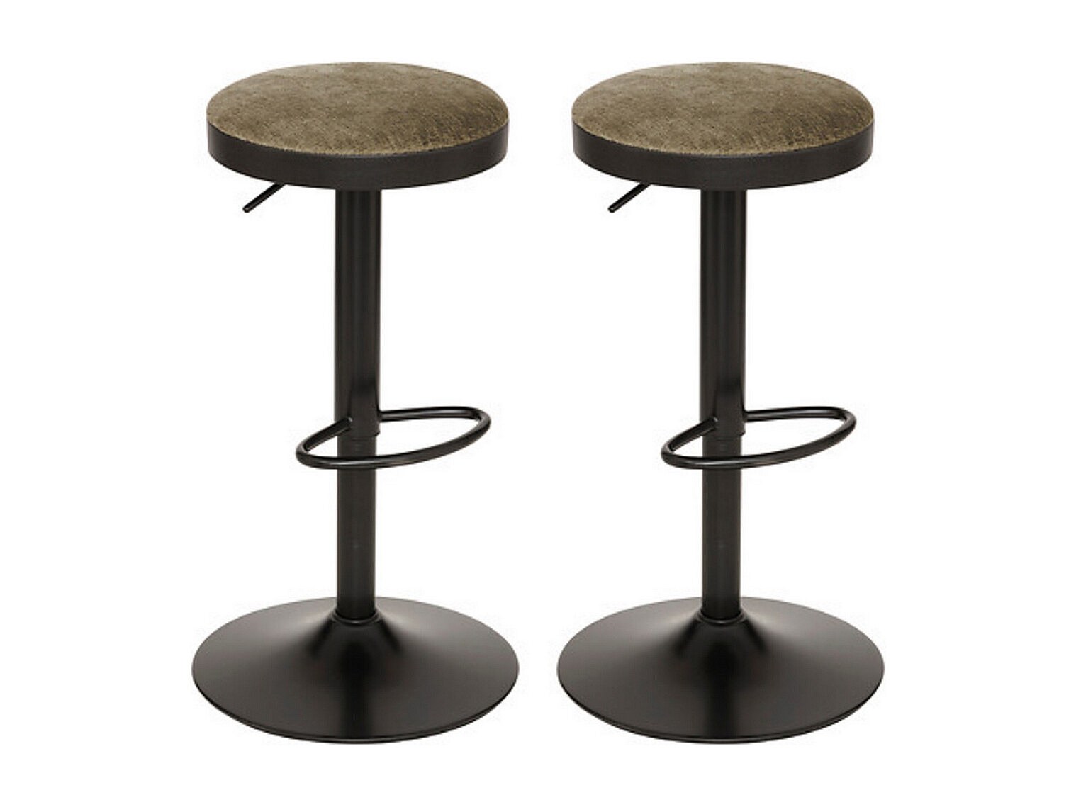 Lot de 2 Tabouret de bar ajustable et pivotant coloris noir et kaki - Diamètre 41,5 x Hauteur 76 cm