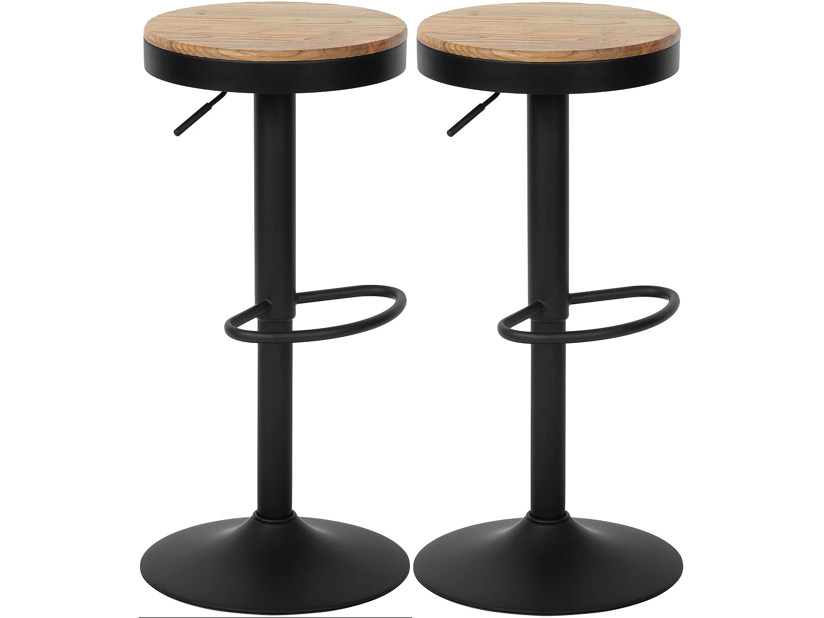 Lot de 2 Tabouret de bar - Bois - Nature - Pitas