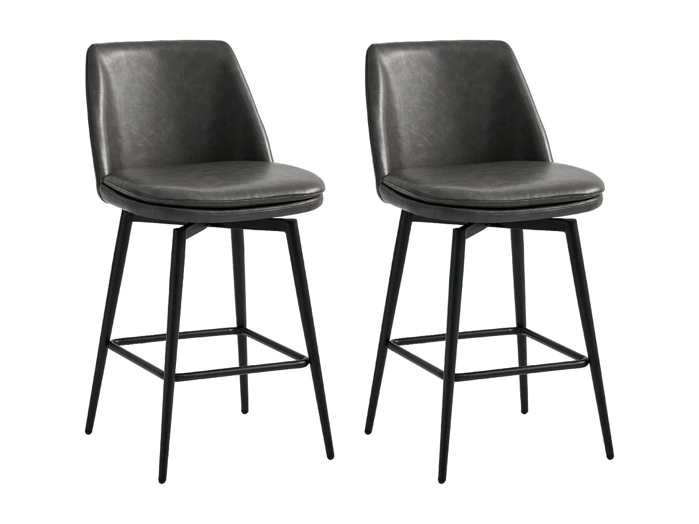 Lot de 2 Tabouret de Bar, Chaise de Bar,Chaises Hautes en PU, Rotatif sur 360°avec Dossier et Repose-Pieds, Hauteur 96 cm, pour Bars et Cuisine Gris foncé