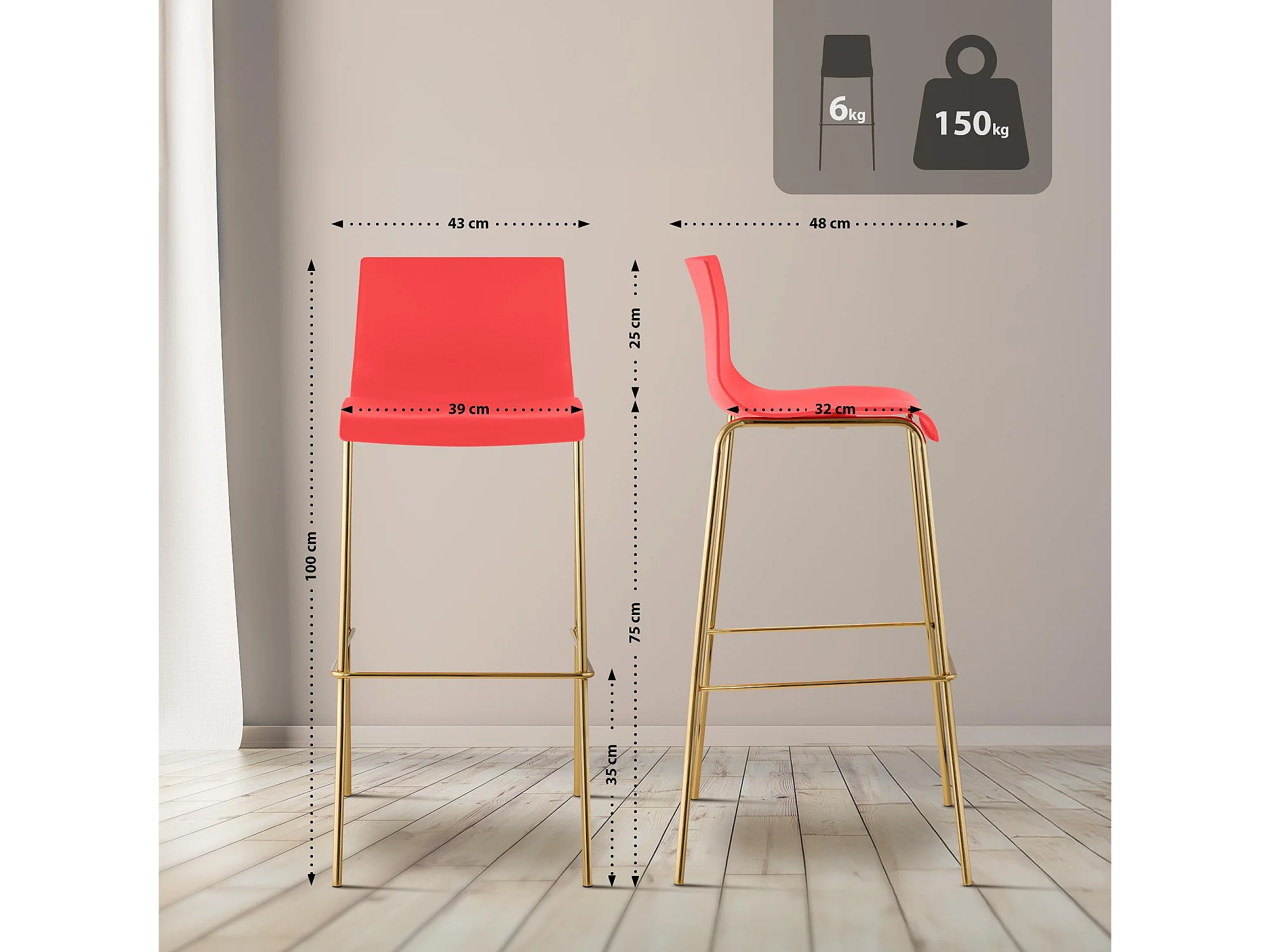 Lot de 2 Tabouret de bar - Plastique & Antique foncé - Rouge - Hover