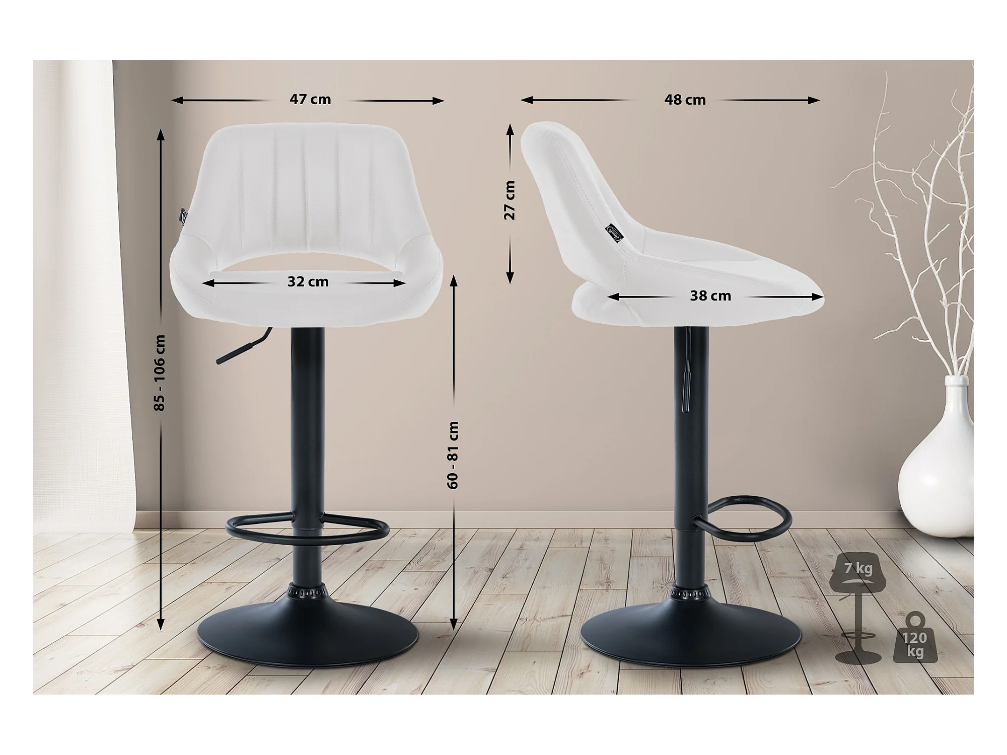Tabouret de bar blanc hauteur ajustable