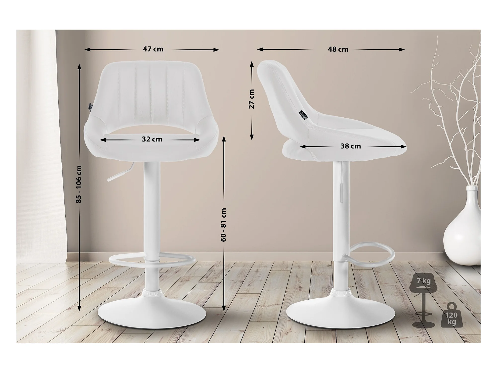 Lot de 2 Tabouret de bar - Similicuir & Acier inoxydable - Blanc - Cadiz