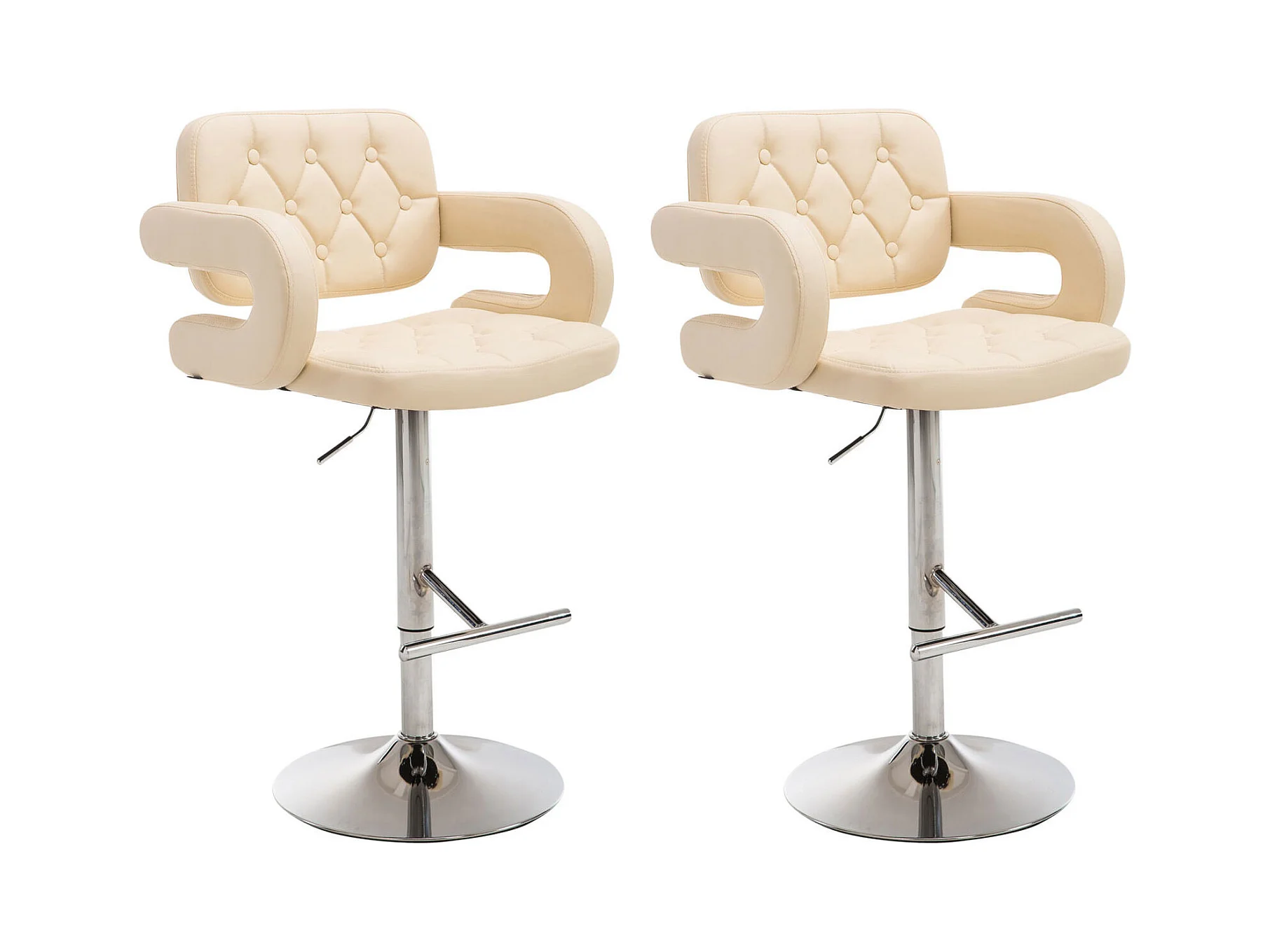 Lot de 2 Tabouret de bar - Similicuir & Métal chromé - Crème - Dublin
