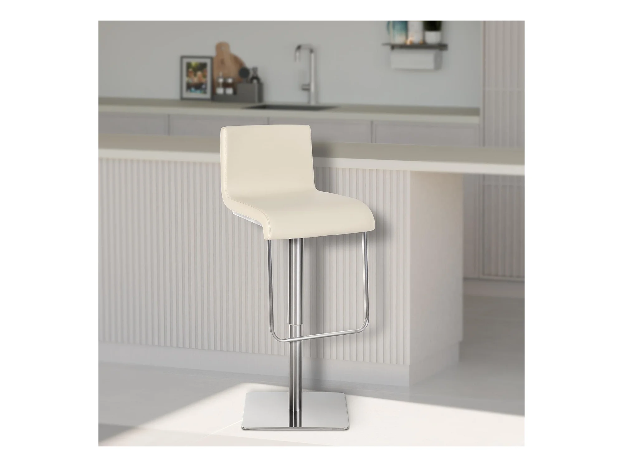 Lot de 2 Tabouret de bar - Similicuir & Acier inoxydable - Crème - Limon